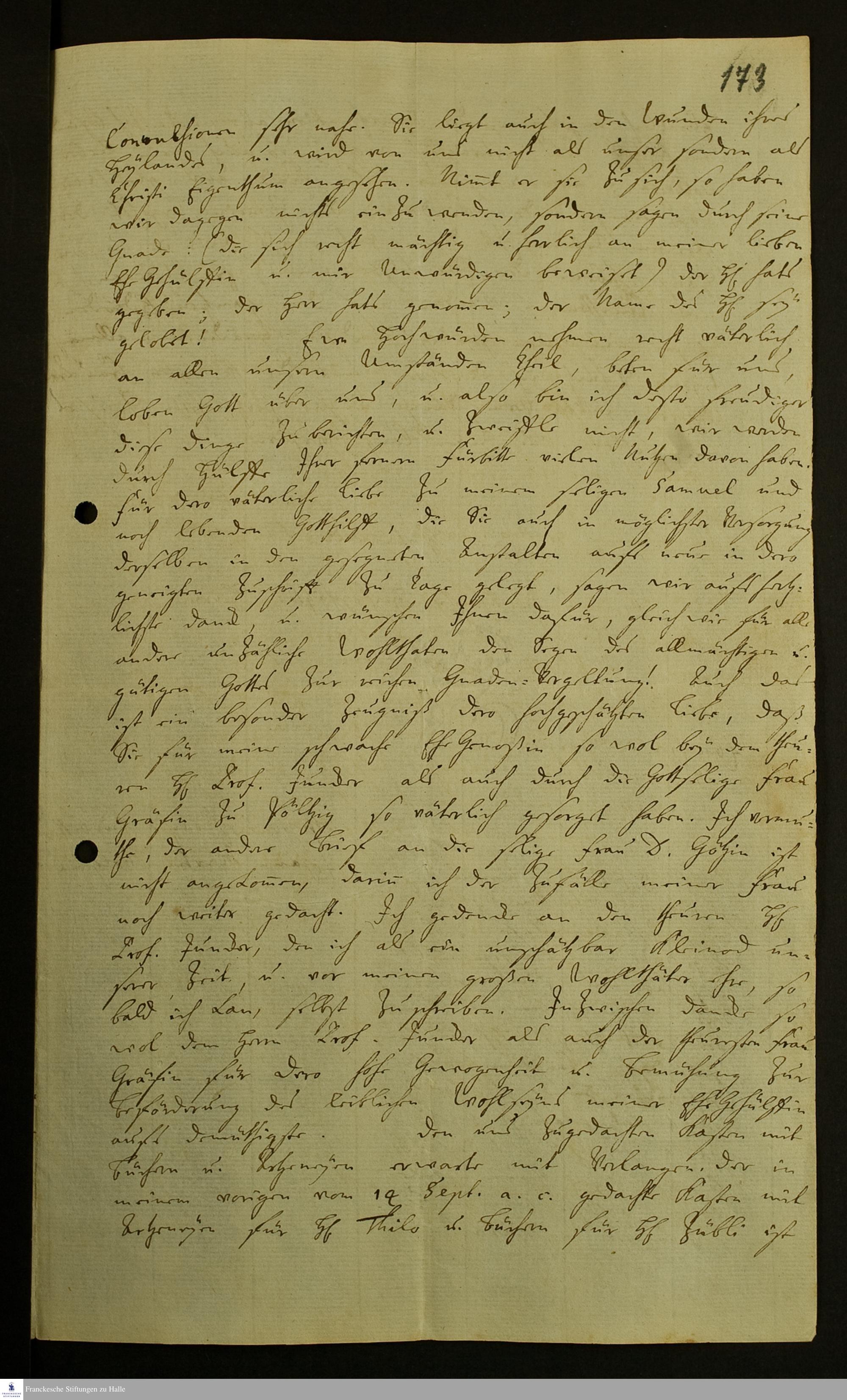 Brief von Johann Martin Boltzius an Gotthilf August Francke über den Tod seines ältesten Sohnes und seiner jüngsten Tochter.