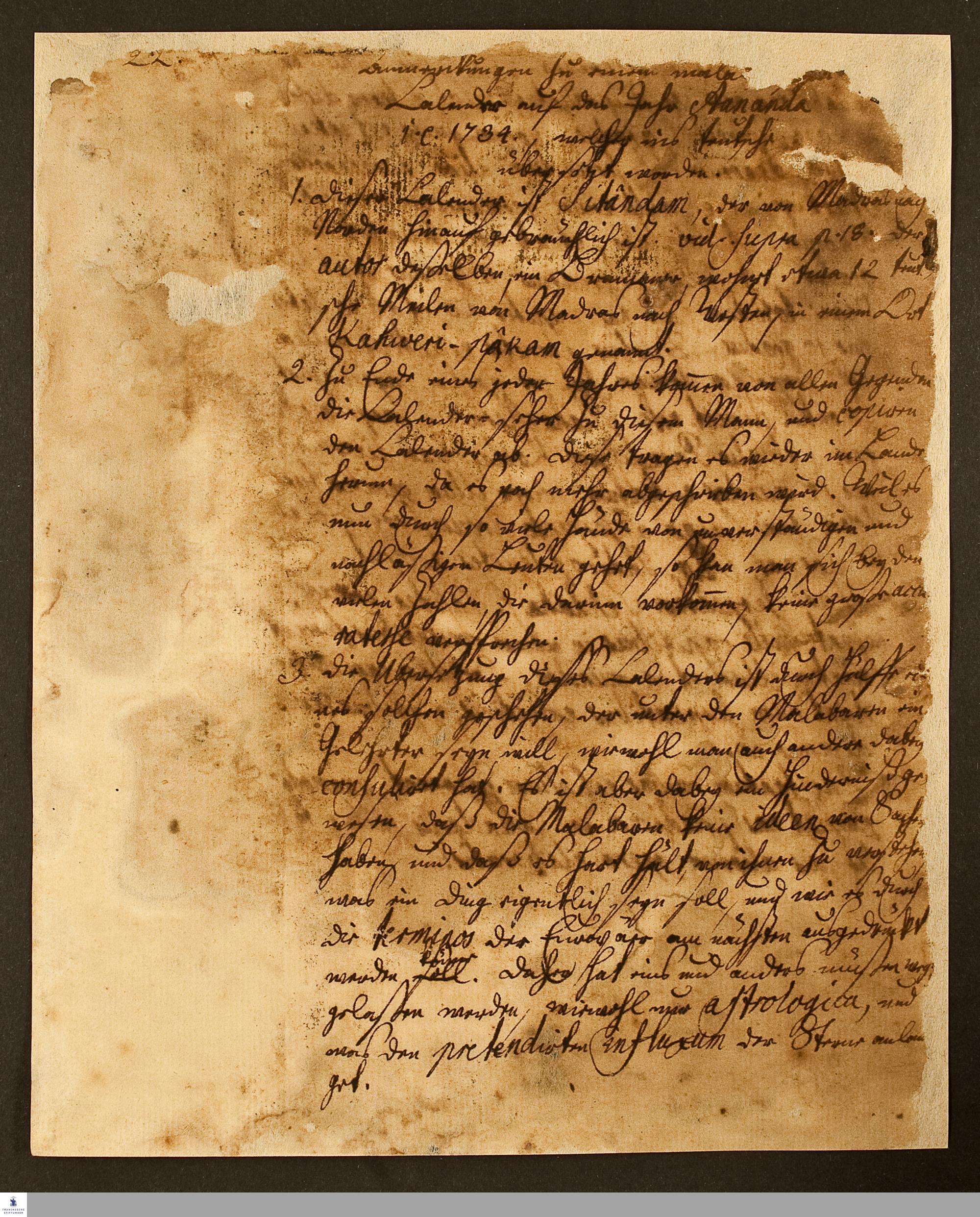 Studie über den malabarischen Kalender von Christoph Theodosius Walther.