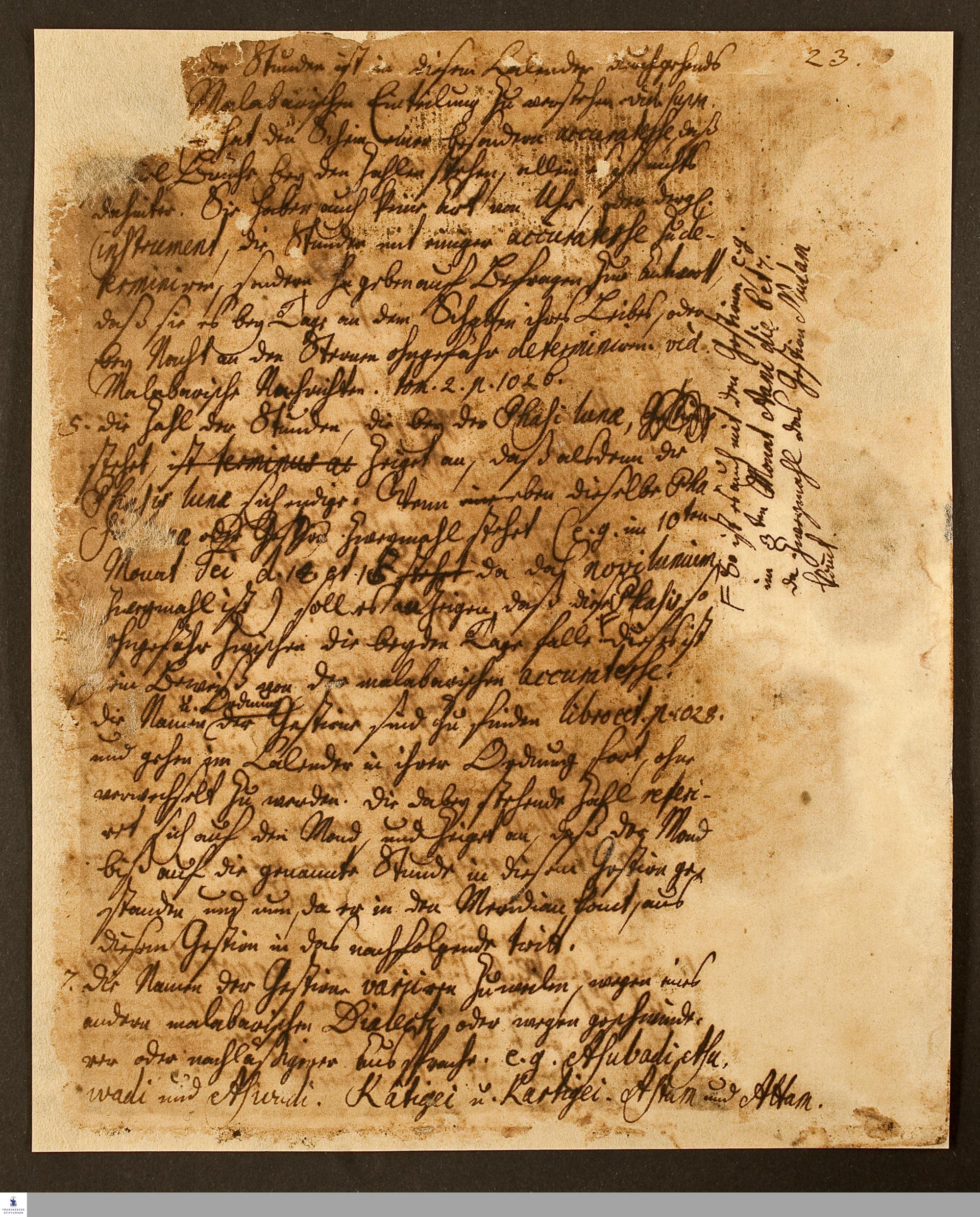 Studie über den malabarischen Kalender von Christoph Theodosius Walther.