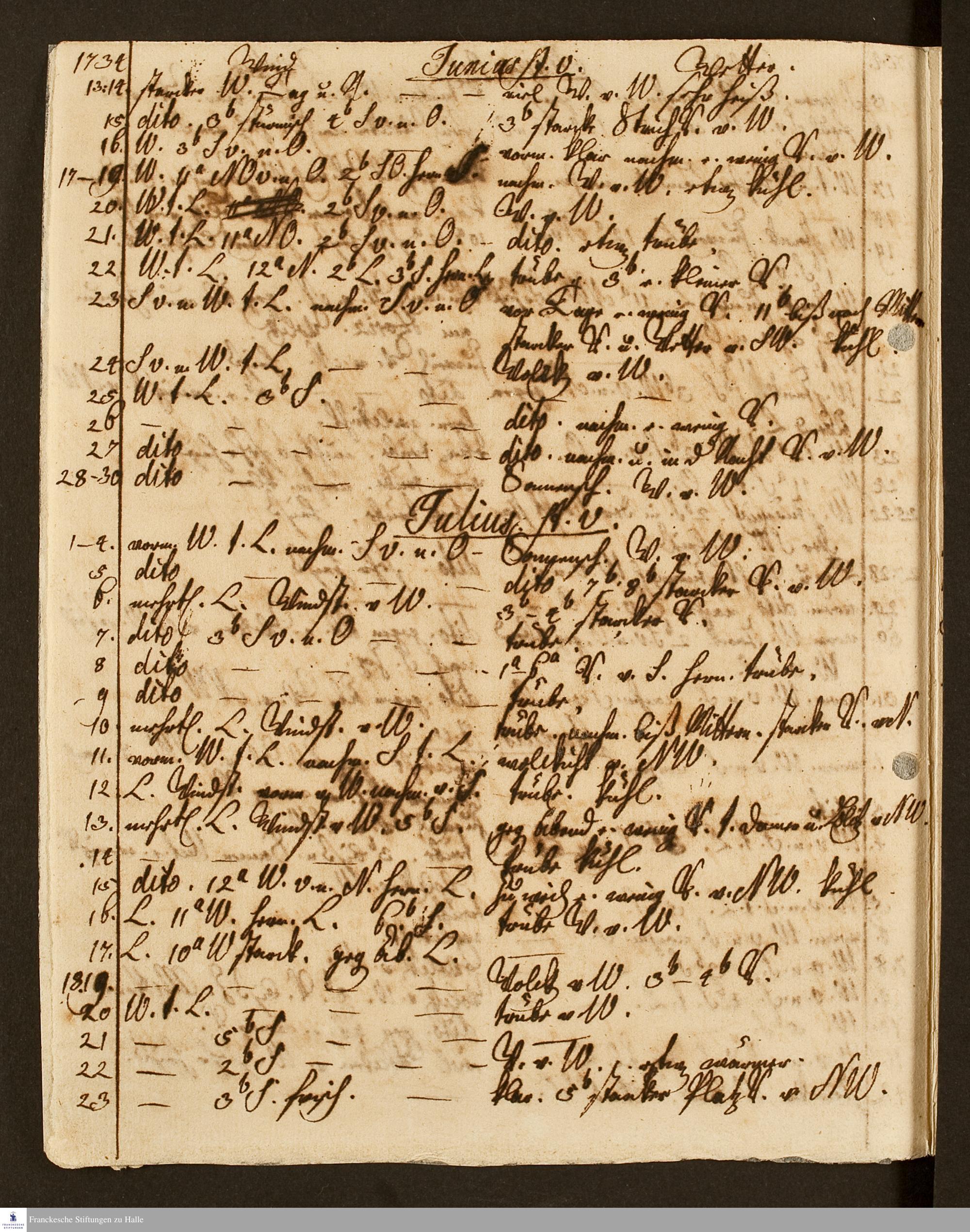 Wind- und Wetterbeobachtungen von 1732-1737.