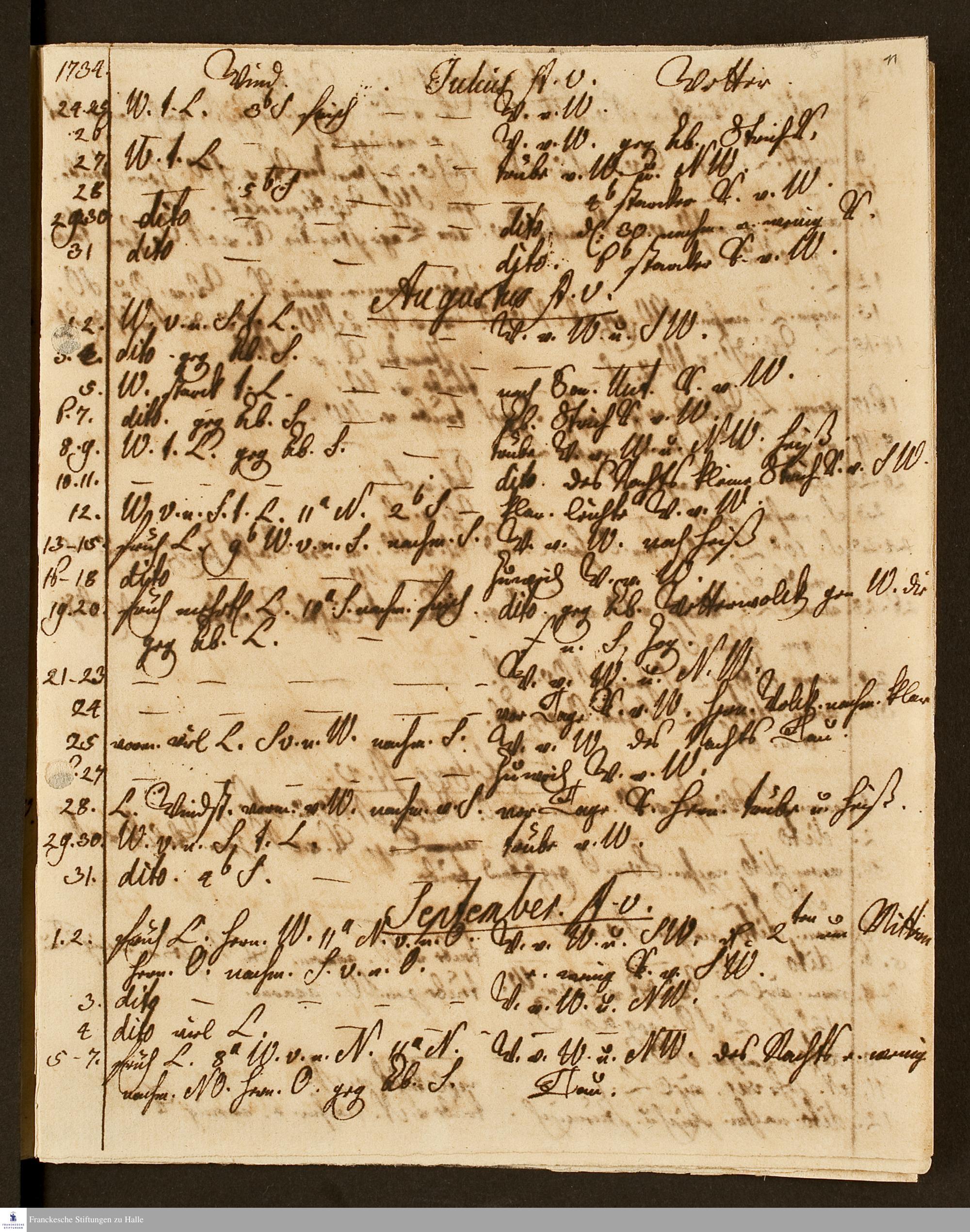 Wind- und Wetterbeobachtungen von 1732-1737.
