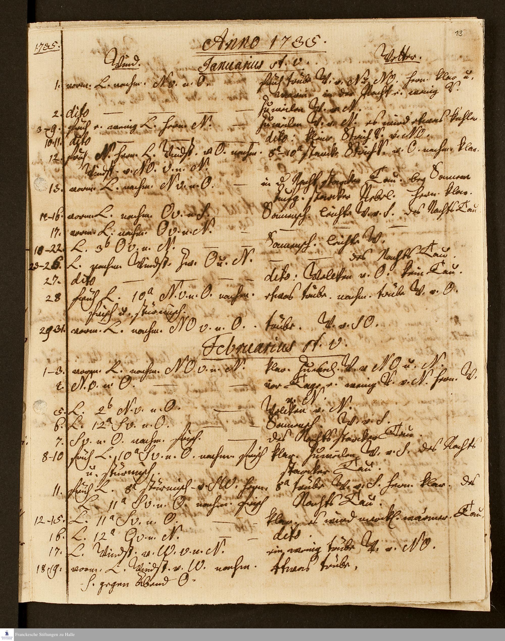Wind- und Wetterbeobachtungen von 1732-1737.