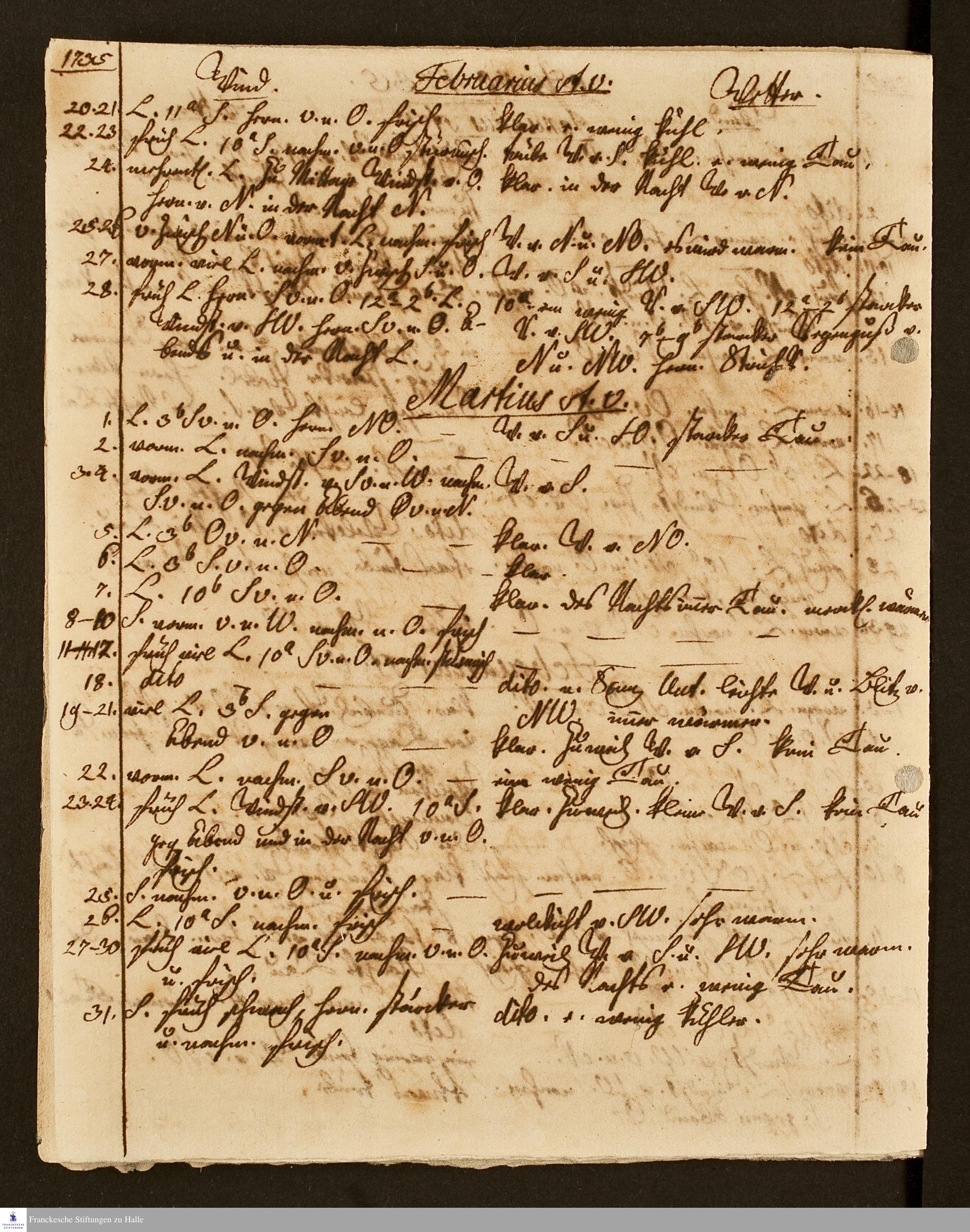 Wind- und Wetterbeobachtungen von 1732-1737.