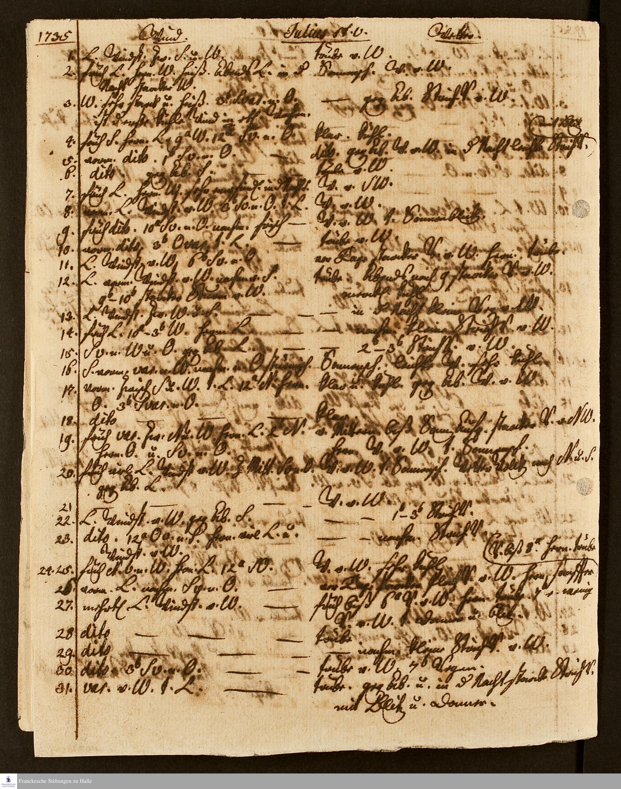 Wind- und Wetterbeobachtungen von 1732-1737.