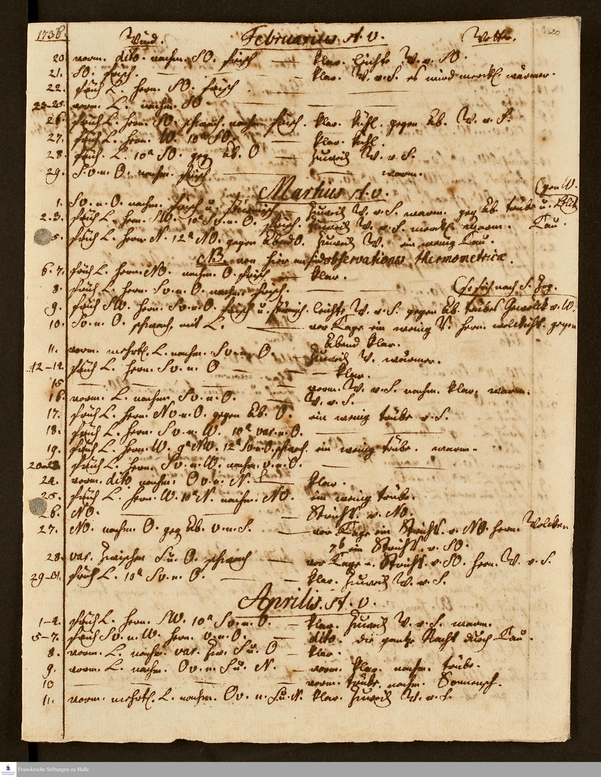 Wind- und Wetterbeobachtungen von 1732-1737.