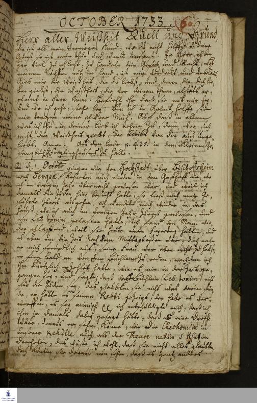 Reisetagebuch von Johann Andreas Manitius.