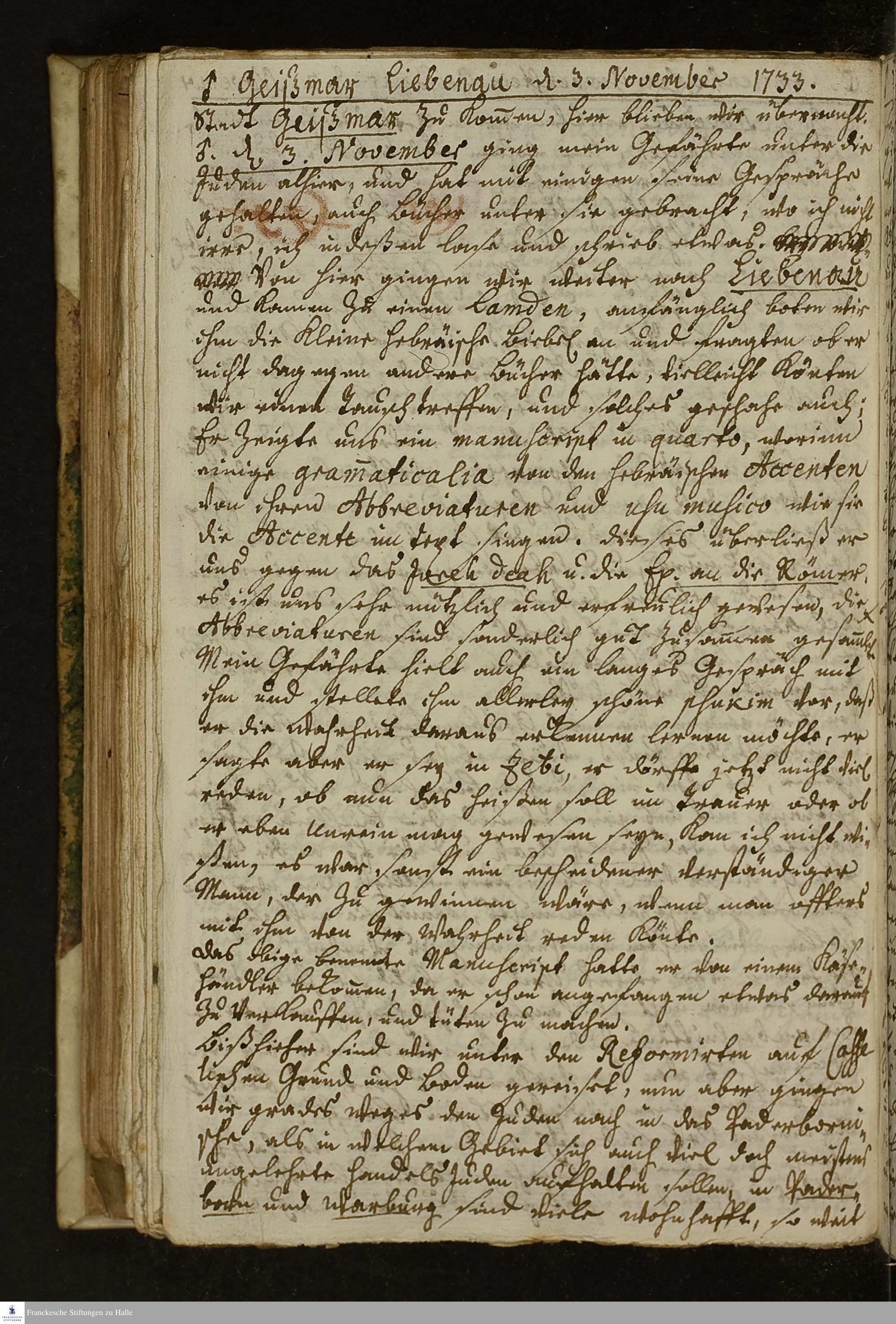 Reisetagebuch von Johann Andreas Manitius.