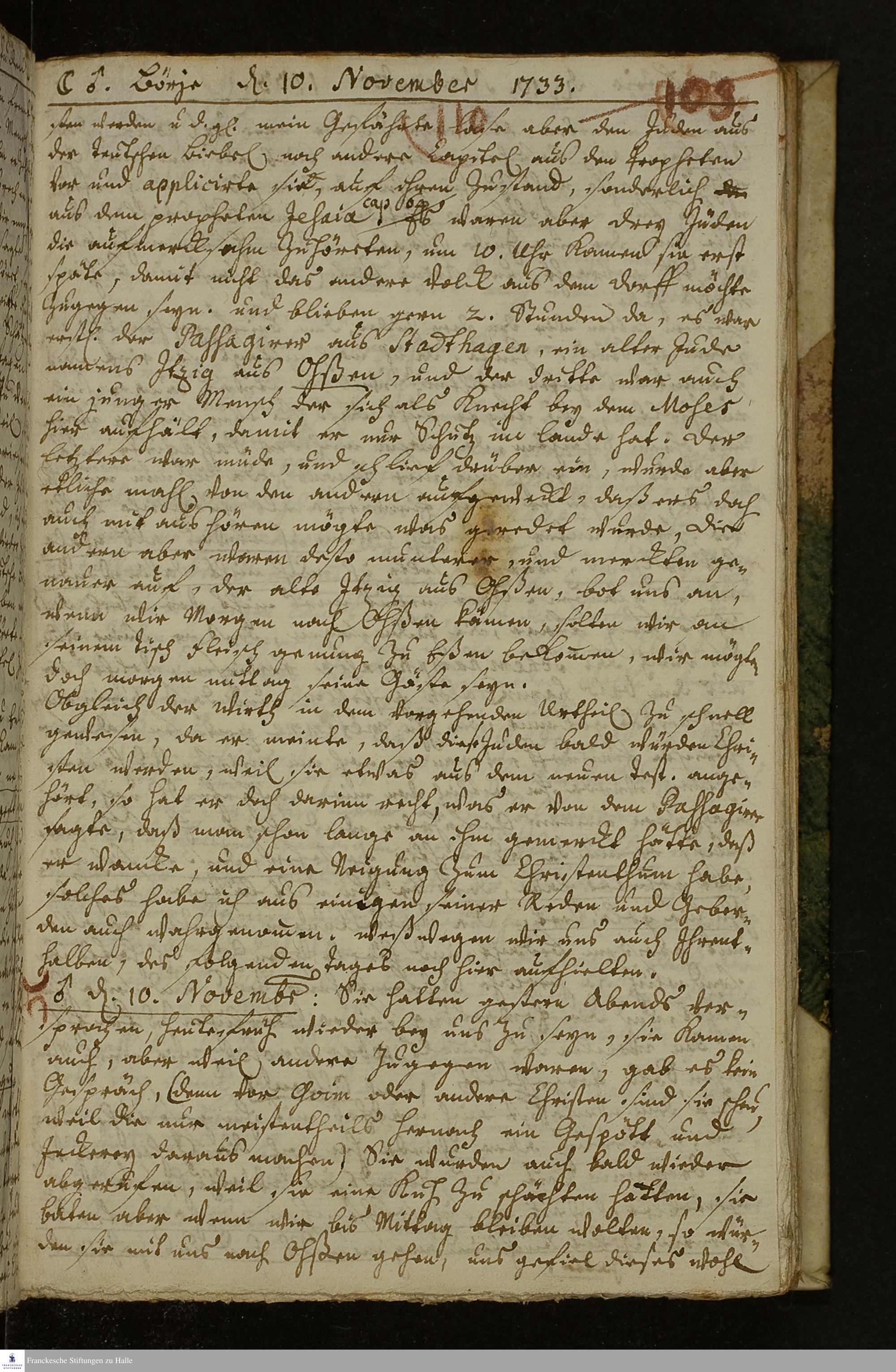 Reisetagebuch von Johann Andreas Manitius.