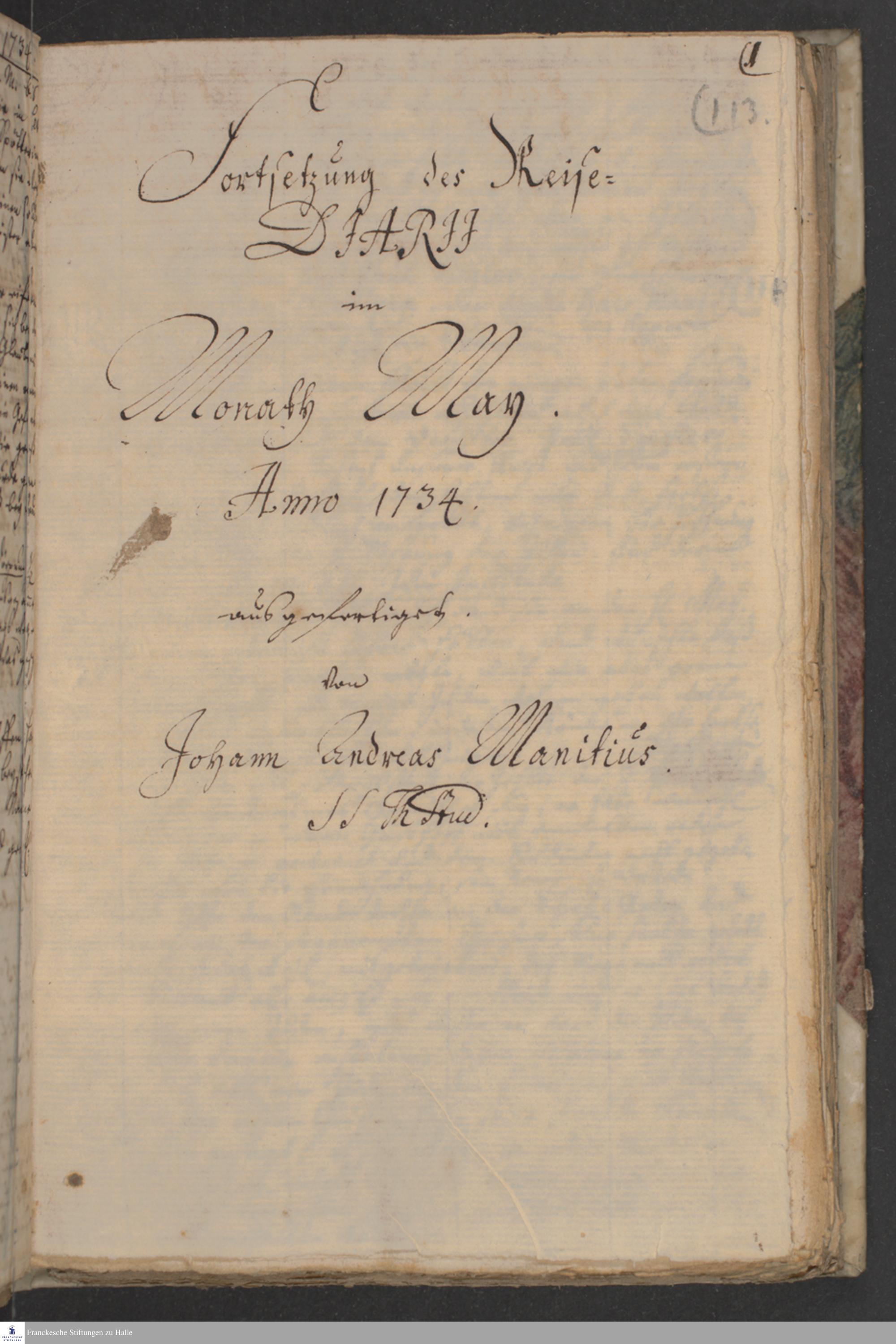 Reisetagebuch von Johann Andreas Manitius.