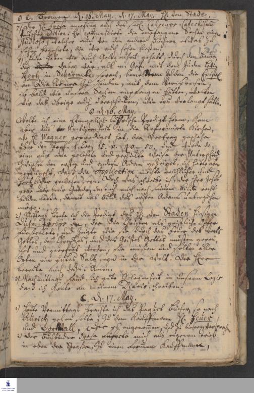Reisetagebuch von Johann Andreas Manitius.