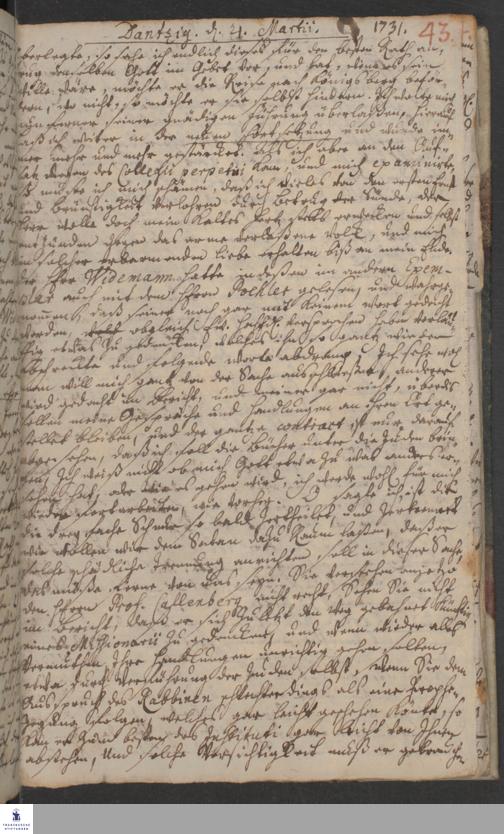 Reisetagebuch von Johann Andreas Manitius.