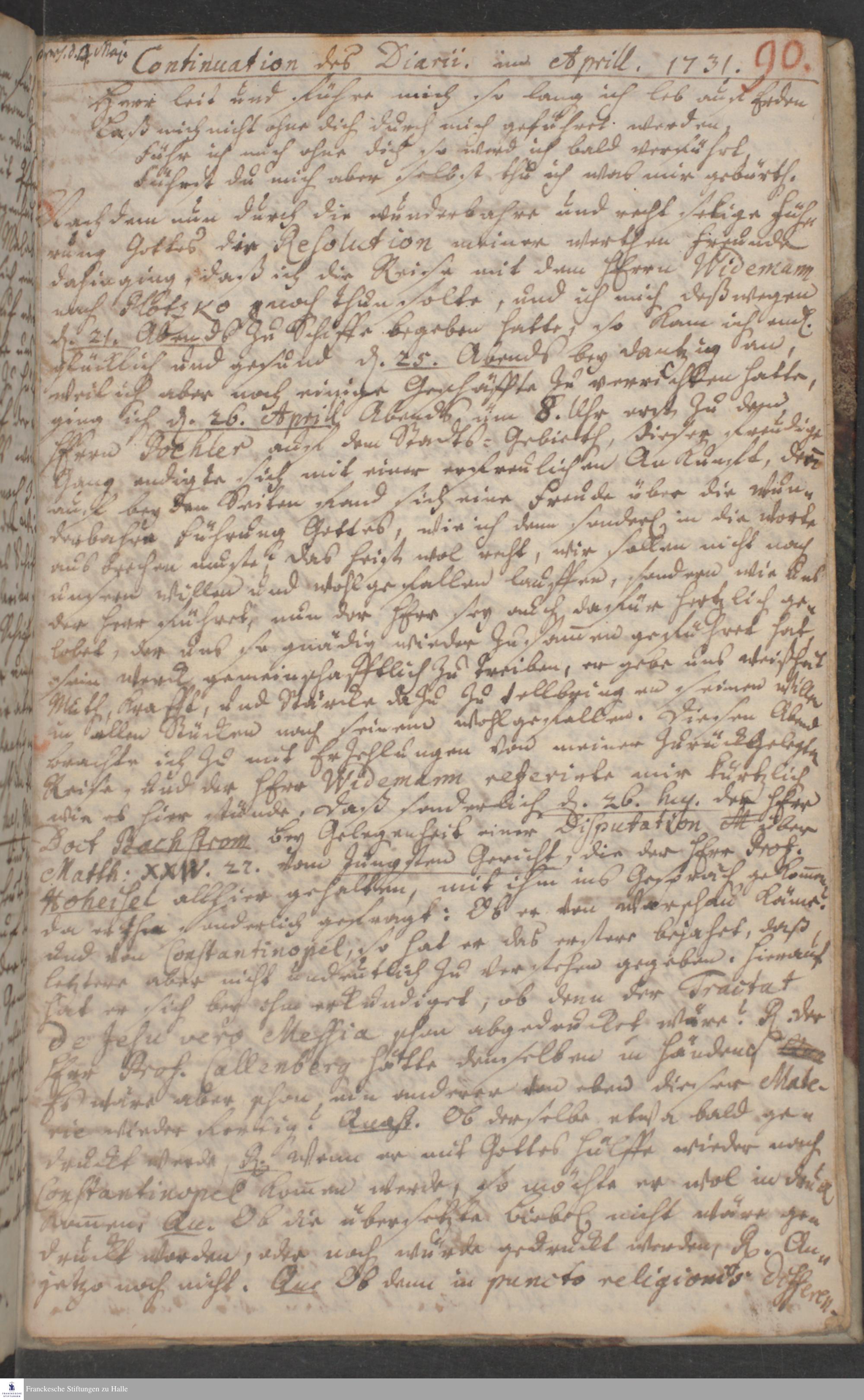 Reisetagebuch von Johann Andreas Manitius.