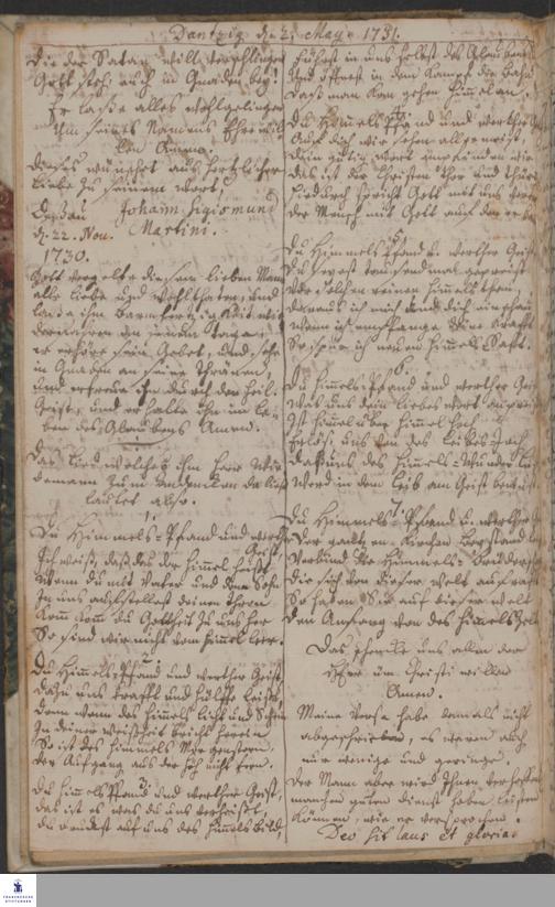 Reisetagebuch von Johann Andreas Manitius und Johann Georg Widmann.