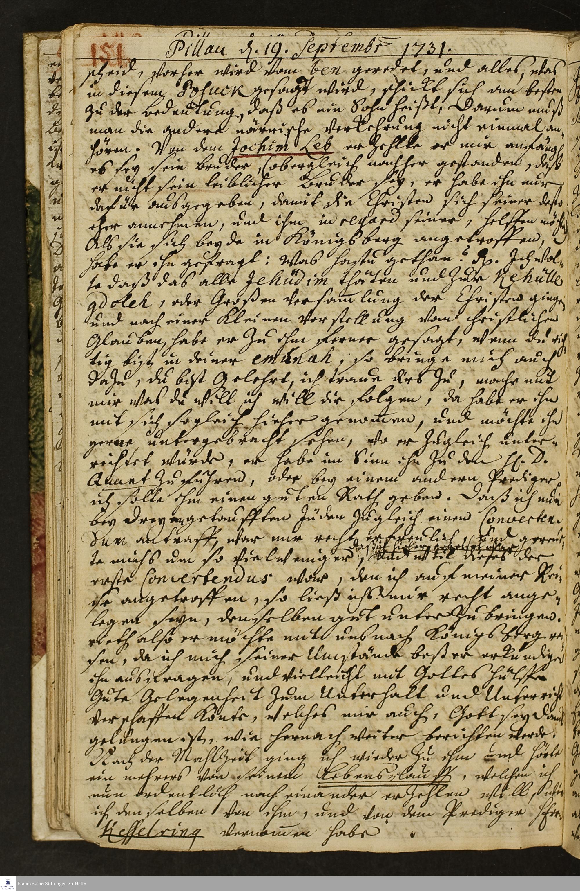 Reisetagebuch von Johann Andreas Manitius.
