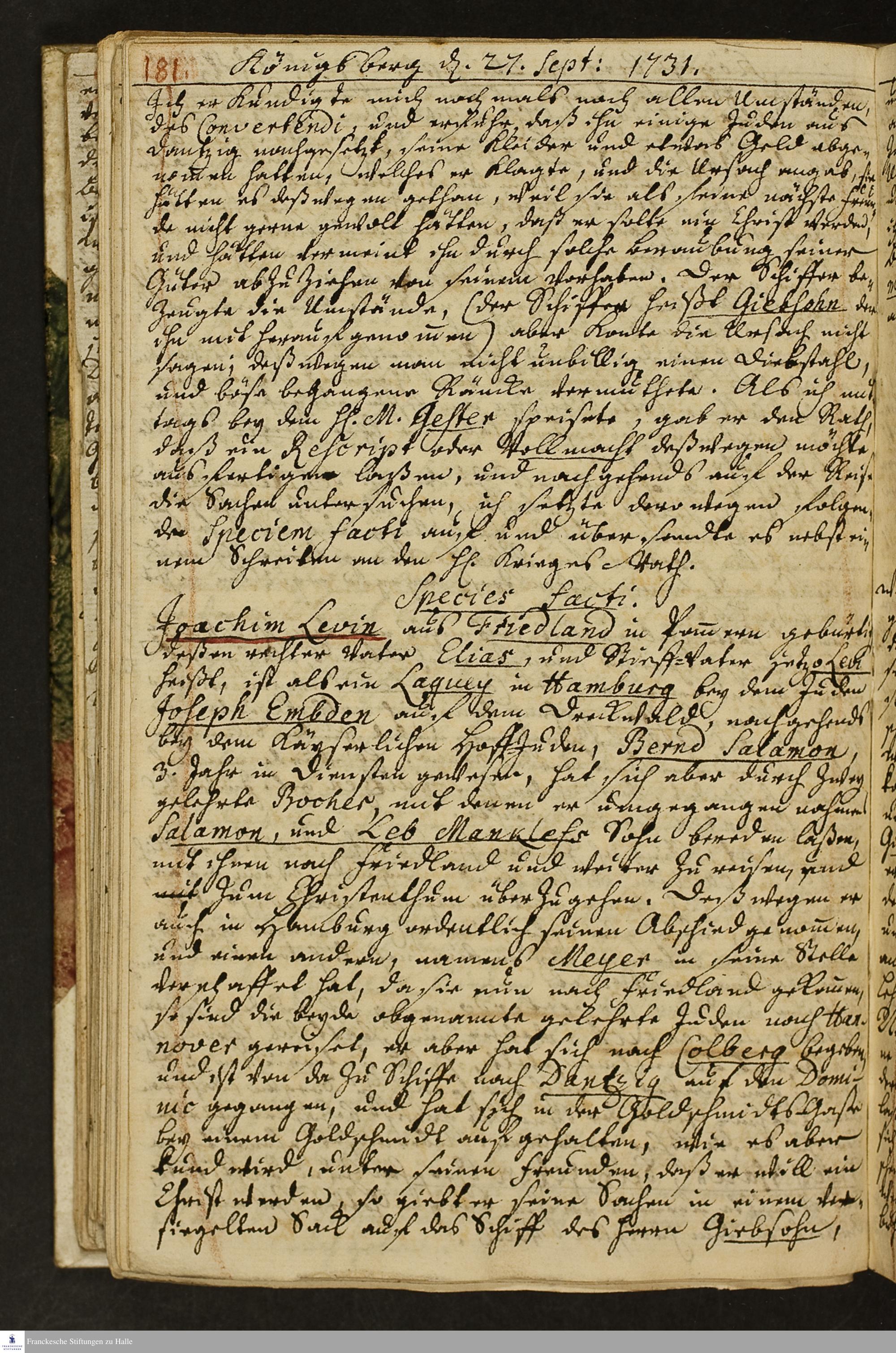 Reisetagebuch von Johann Andreas Manitius.