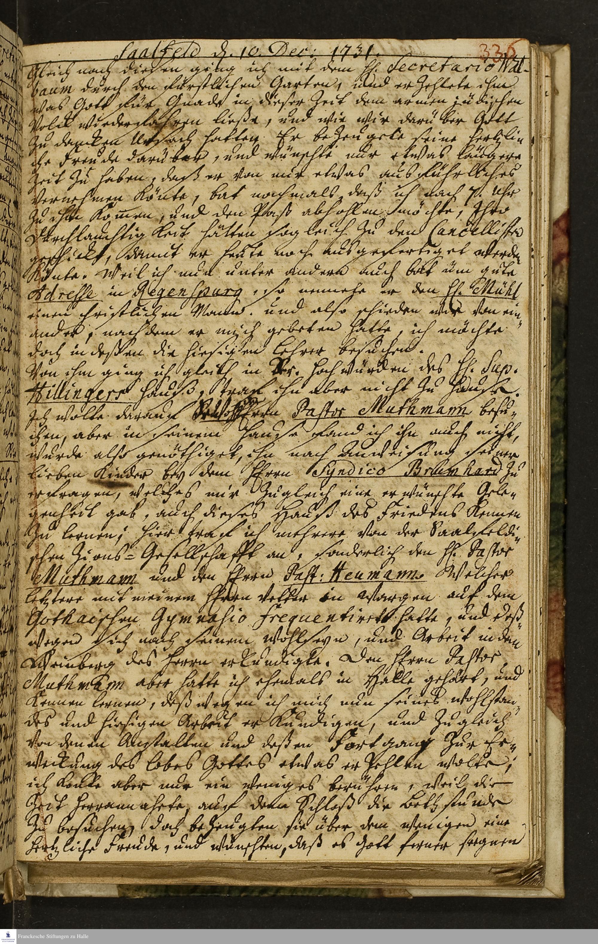 Reisetagebuch von Johann Andreas Manitius.