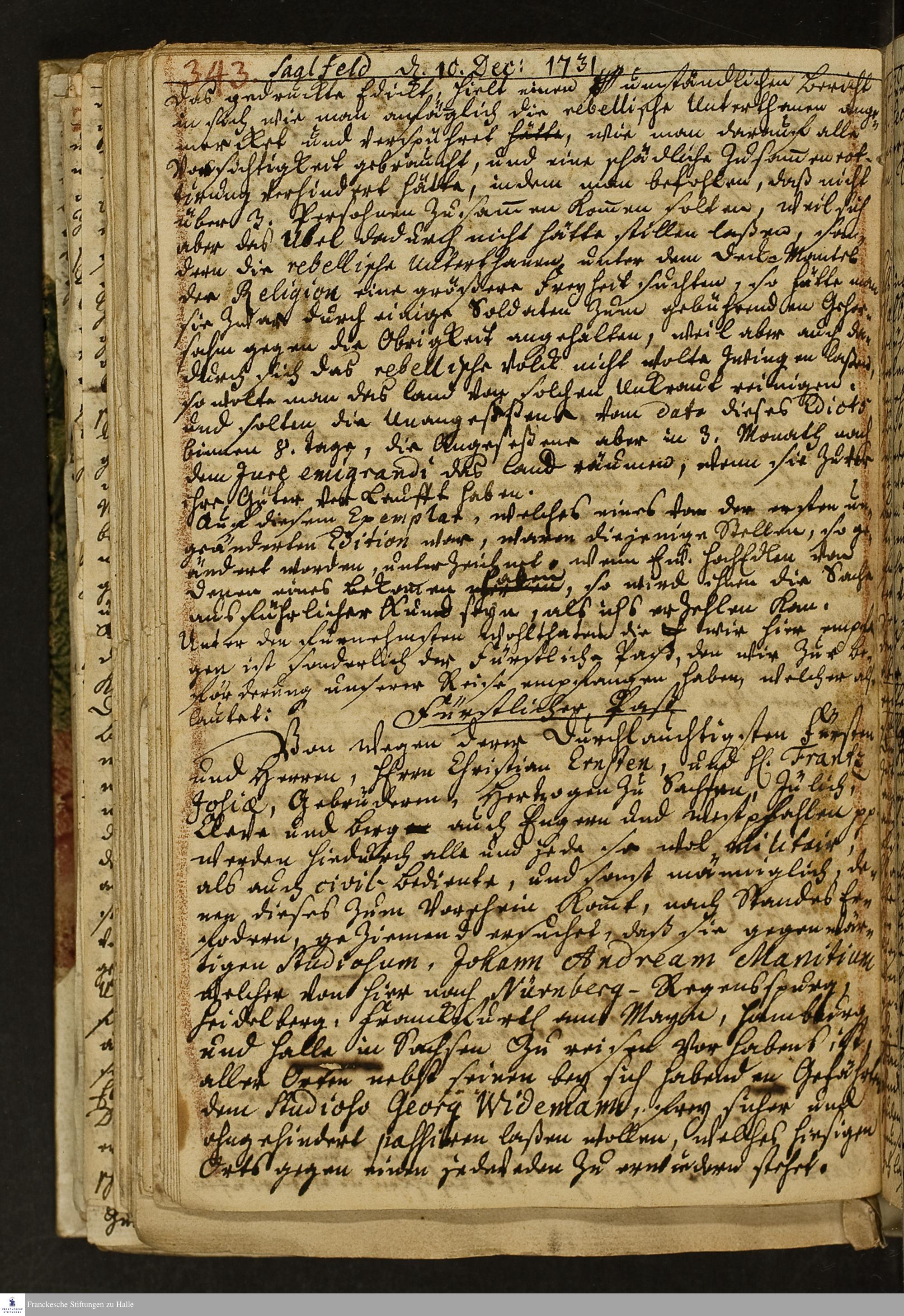 Reisetagebuch von Johann Andreas Manitius.