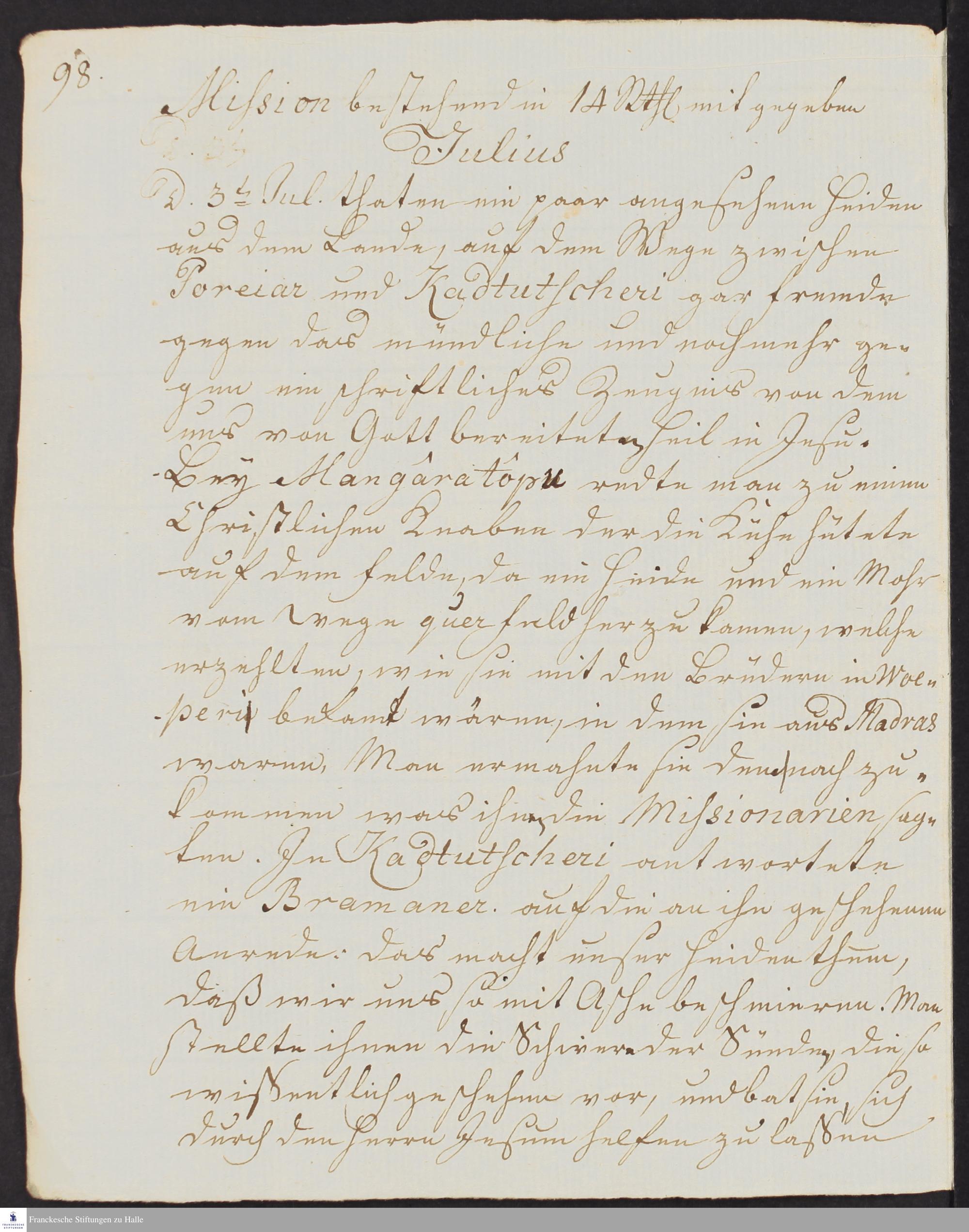 Tagebuch von Johann Balthasar Kohlhoff, Daniel Zeglin, Jacob Klein, Johann Friedrich König, Christoph Samuel John, Johann Wilhelm Gerlach und Johann Peter Rottler.
