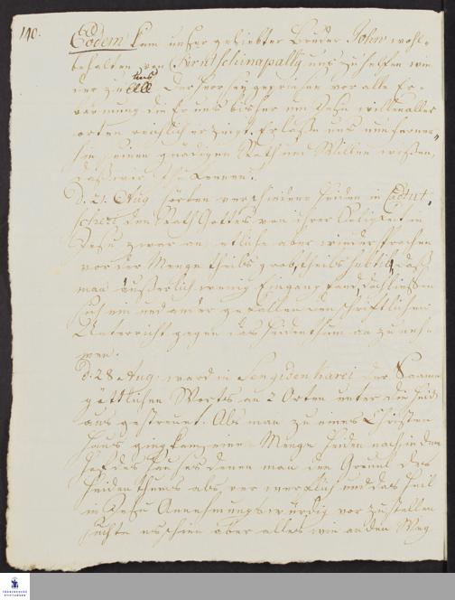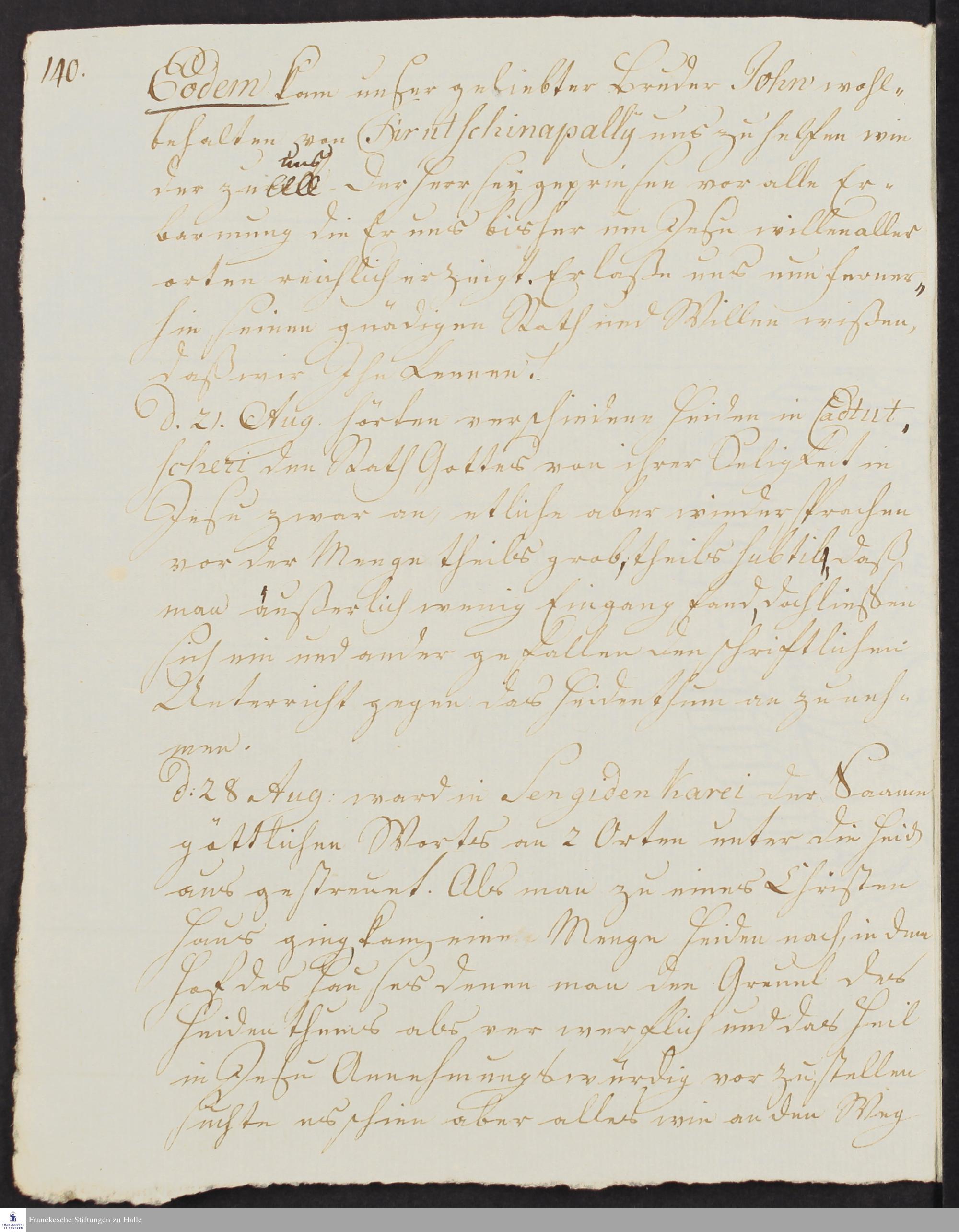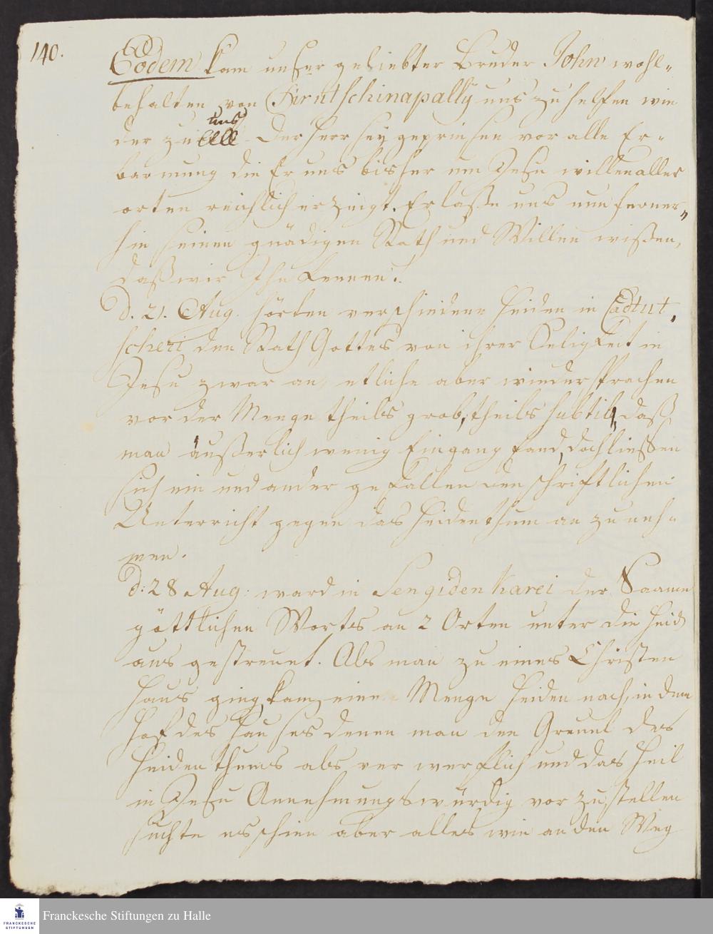 Tagebuch von Johann Balthasar Kohlhoff, Daniel Zeglin, Jacob Klein, Johann Friedrich König, Christoph Samuel John, Johann Wilhelm Gerlach und Johann Peter Rottler.