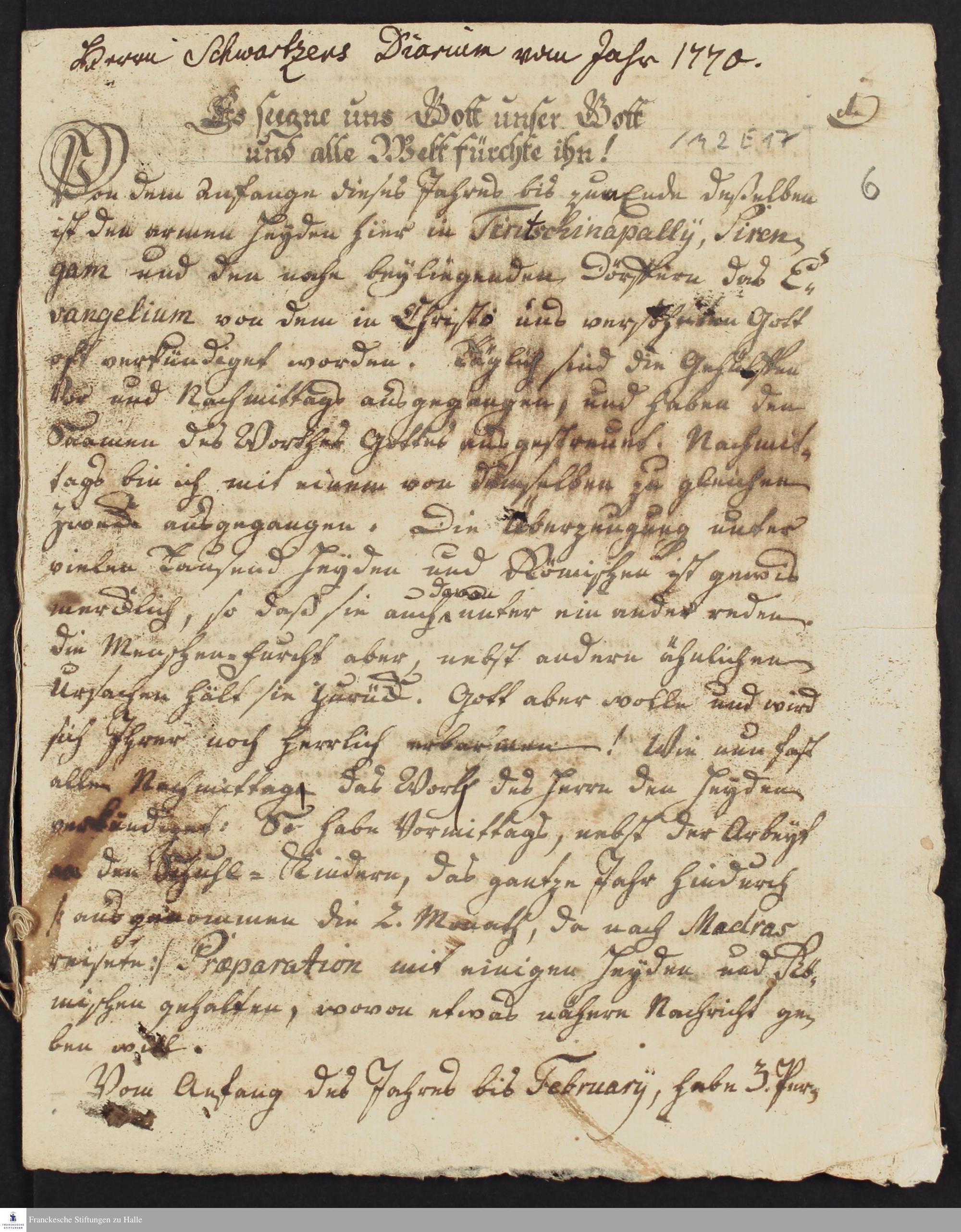 Tagebuch von Christian Friedrich Schwartz.