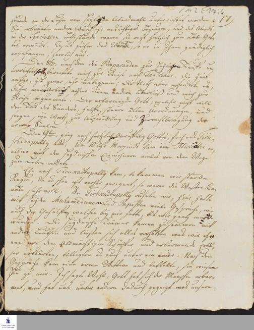 Tagebuch von Christian Friedrich Schwartz.