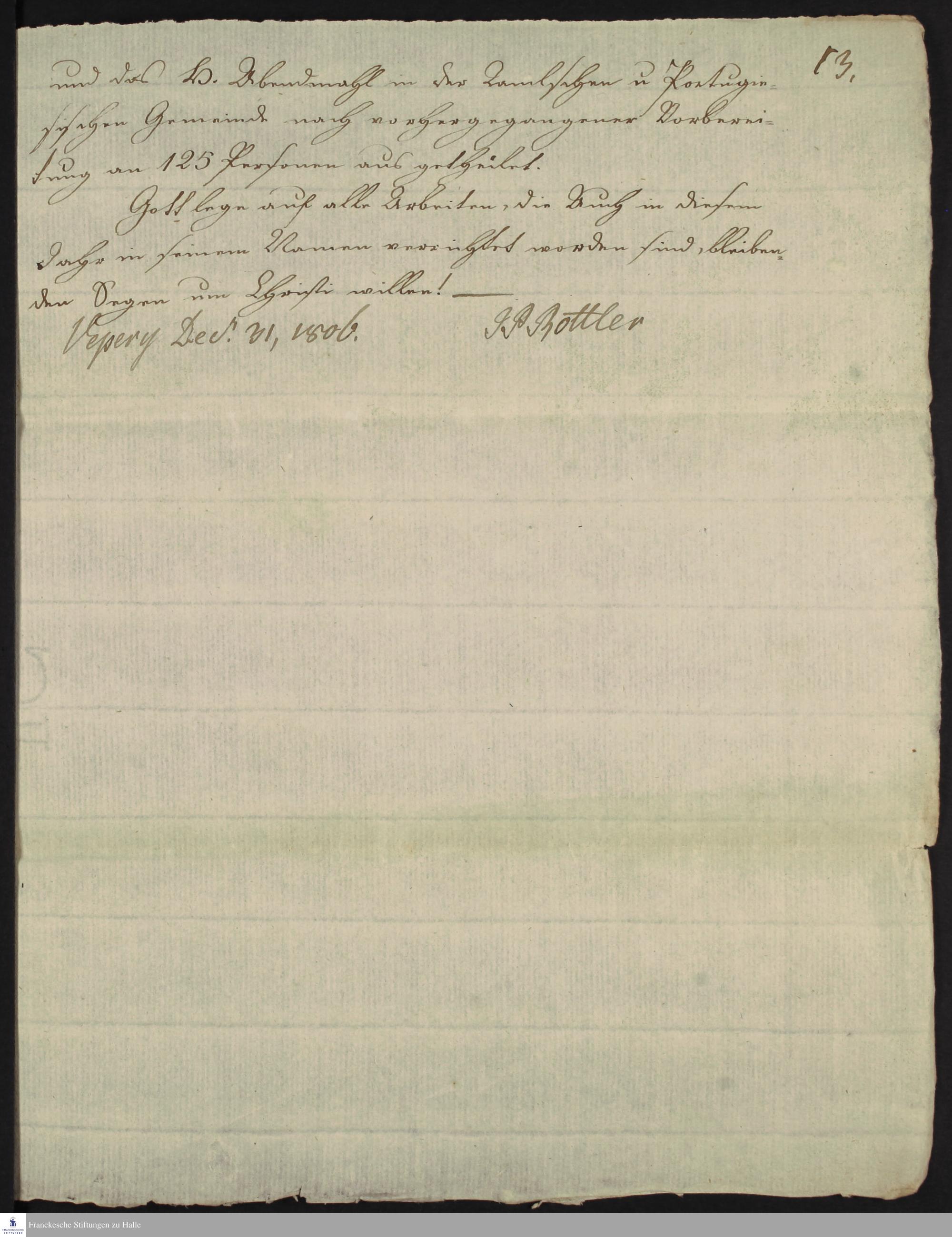 Fragment des Tagebuchs von Johann Peter Rottler.