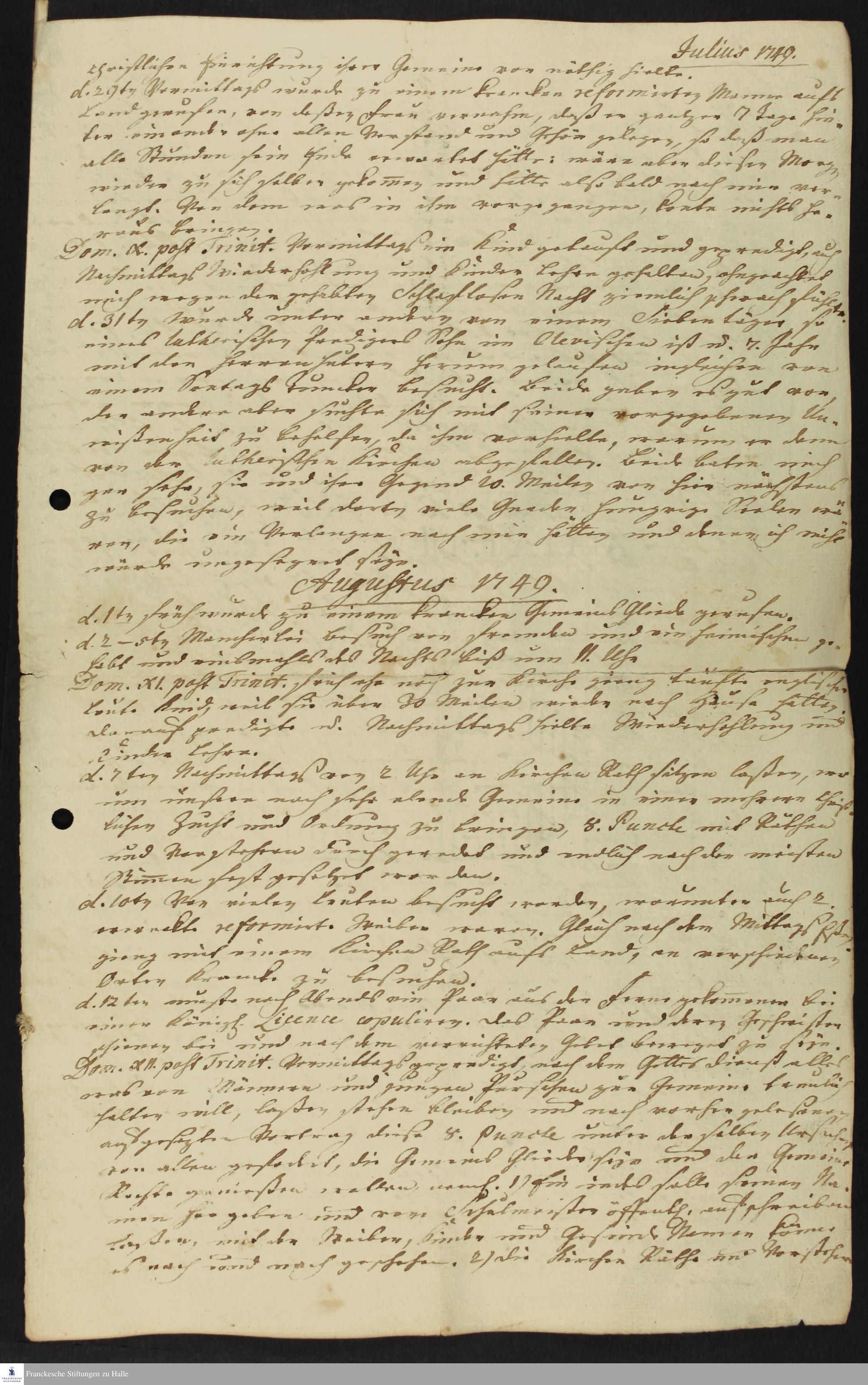 1. - 12. August 1749