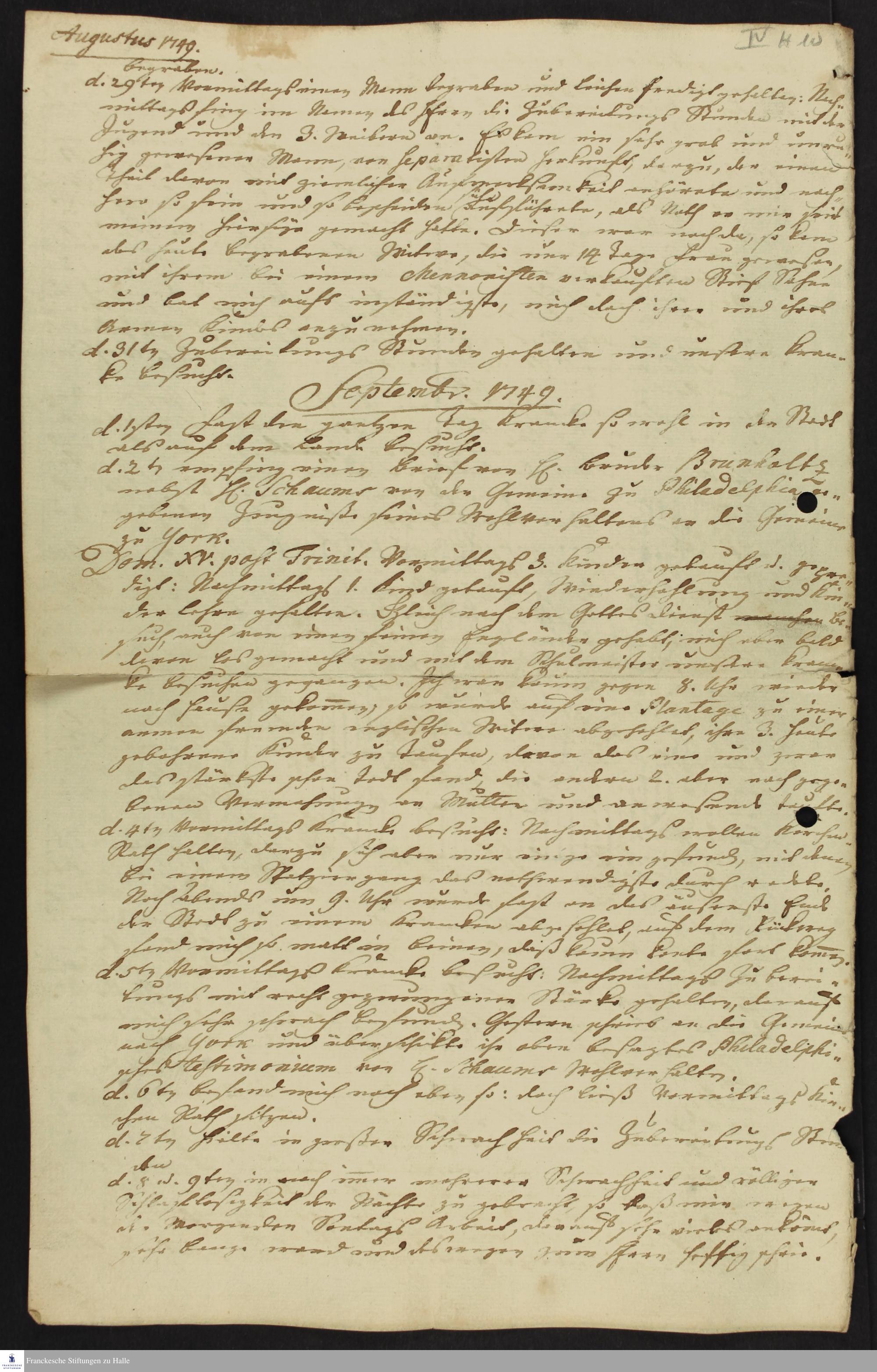 Lancaster, Pa. 07.09.1748-14.11.1749; 15.11.1749