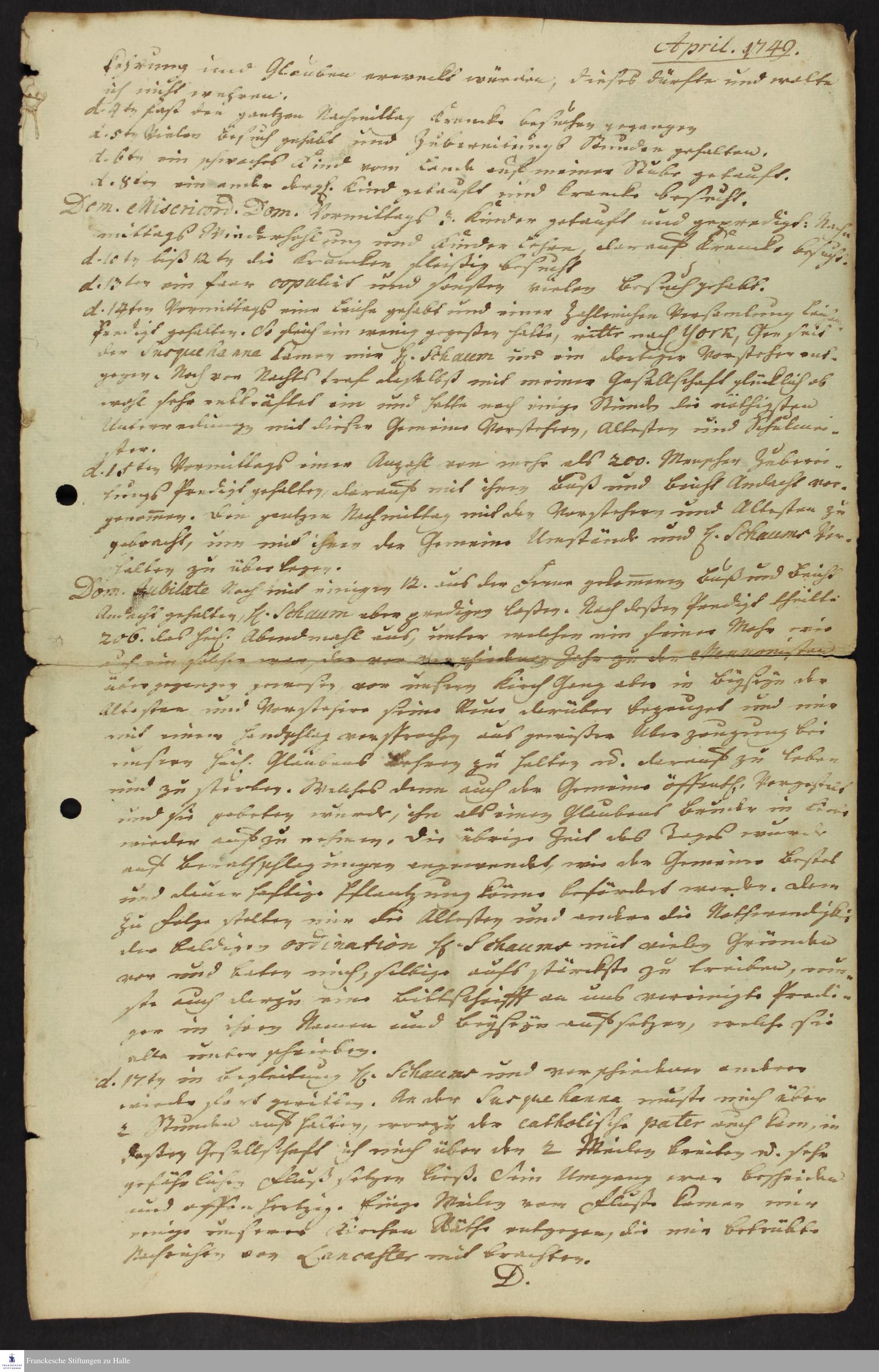 Lancaster, Pa. 07.09.1748-14.11.1749; 15.11.1749