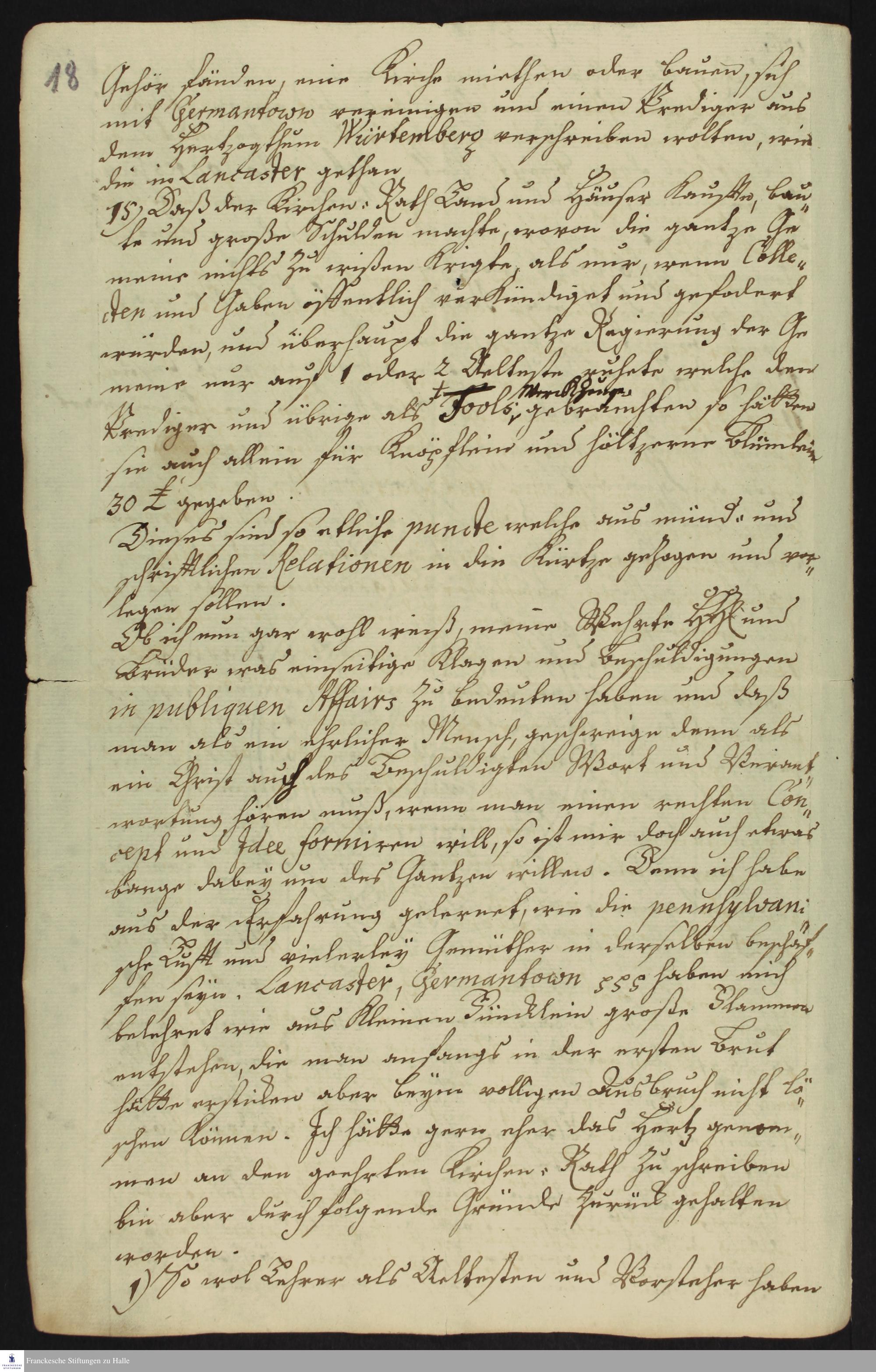 Auszug aus dem Tagebuch von Heinrich Melchior Mühlenberg.