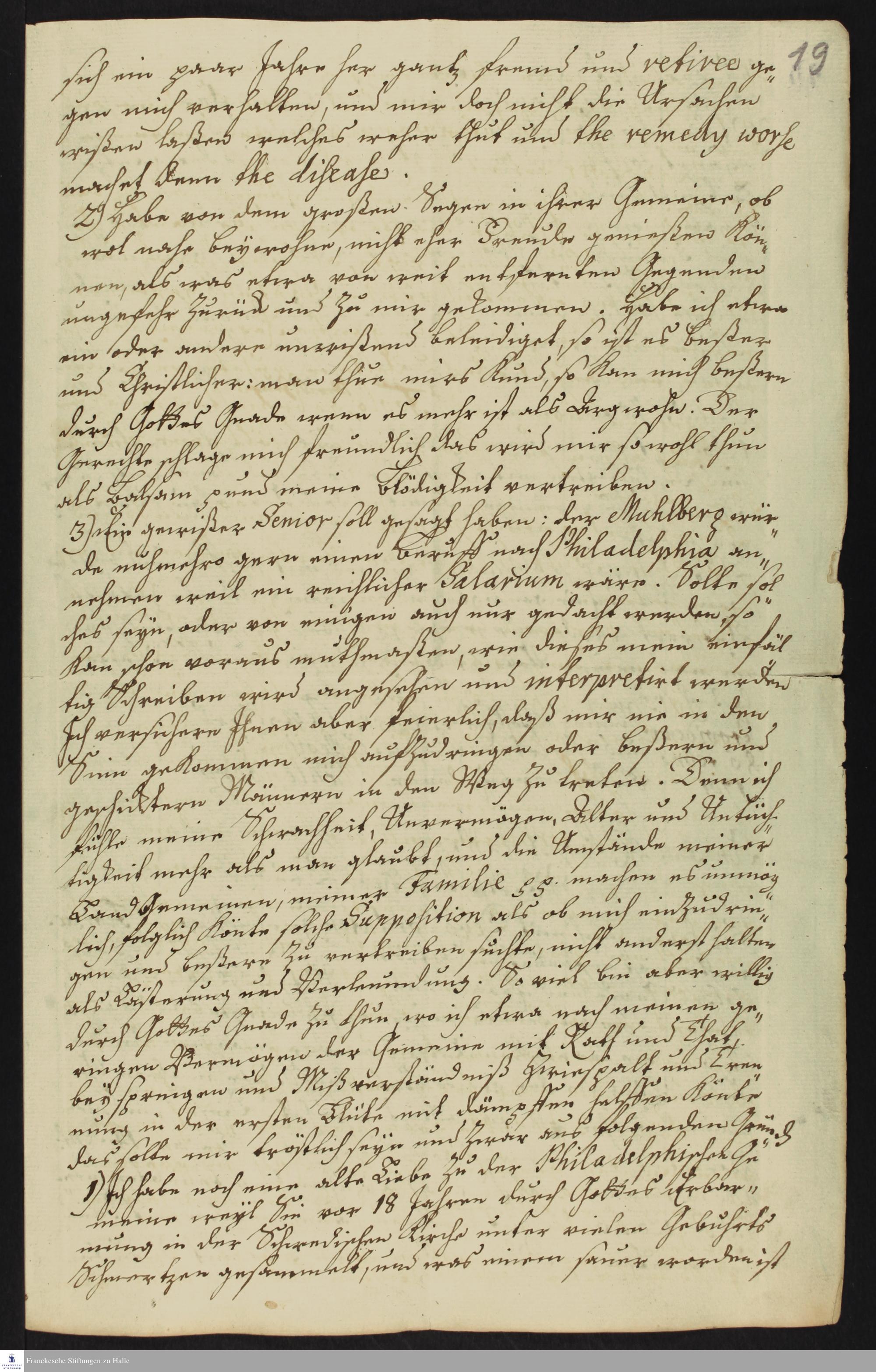 Auszug aus dem Tagebuch von Heinrich Melchior Mühlenberg.