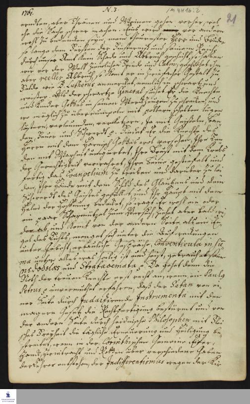 Auszug aus dem Tagebuch von Heinrich Melchior Mühlenberg.