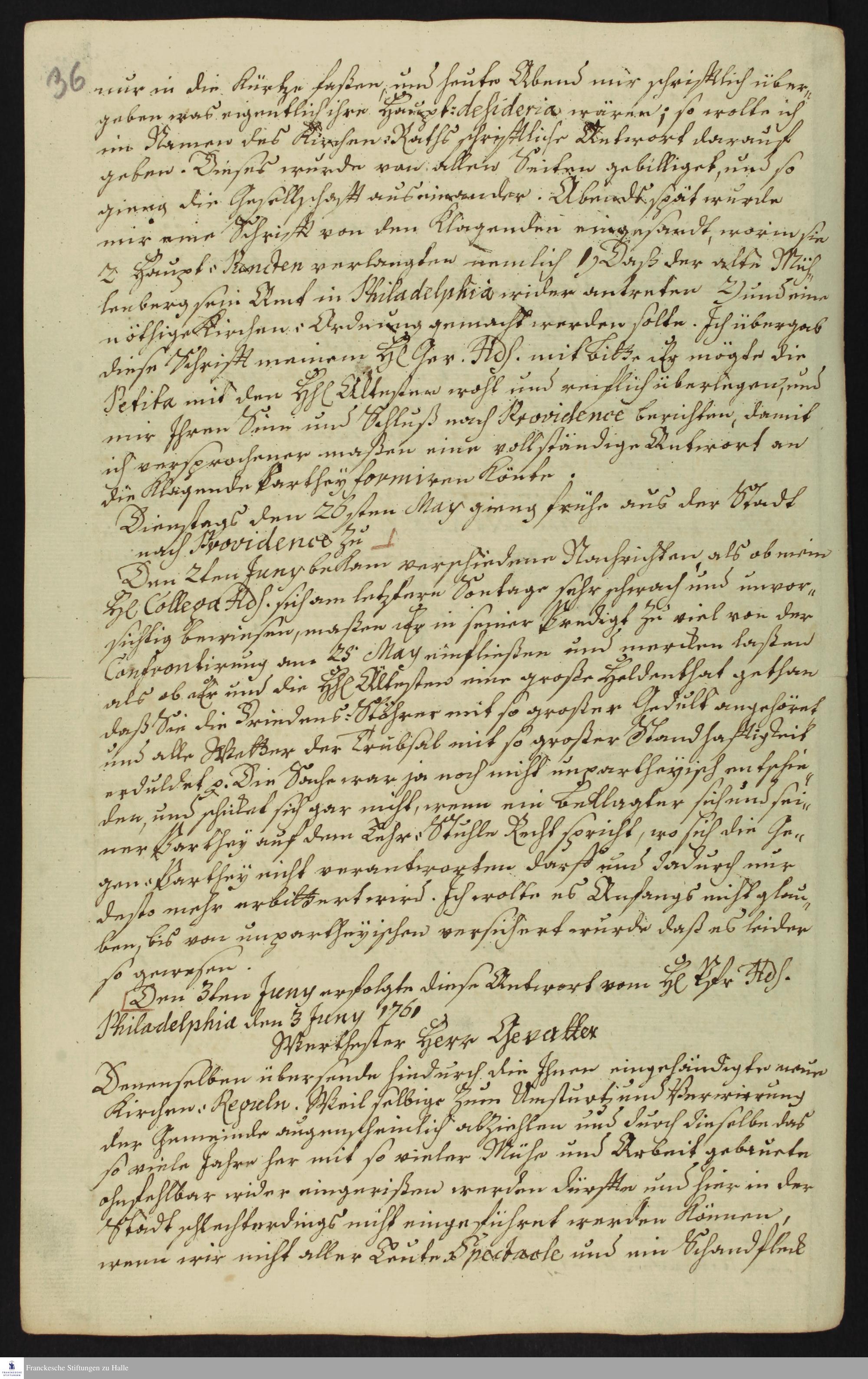 Auszug aus dem Tagebuch von Heinrich Melchior Mühlenberg.