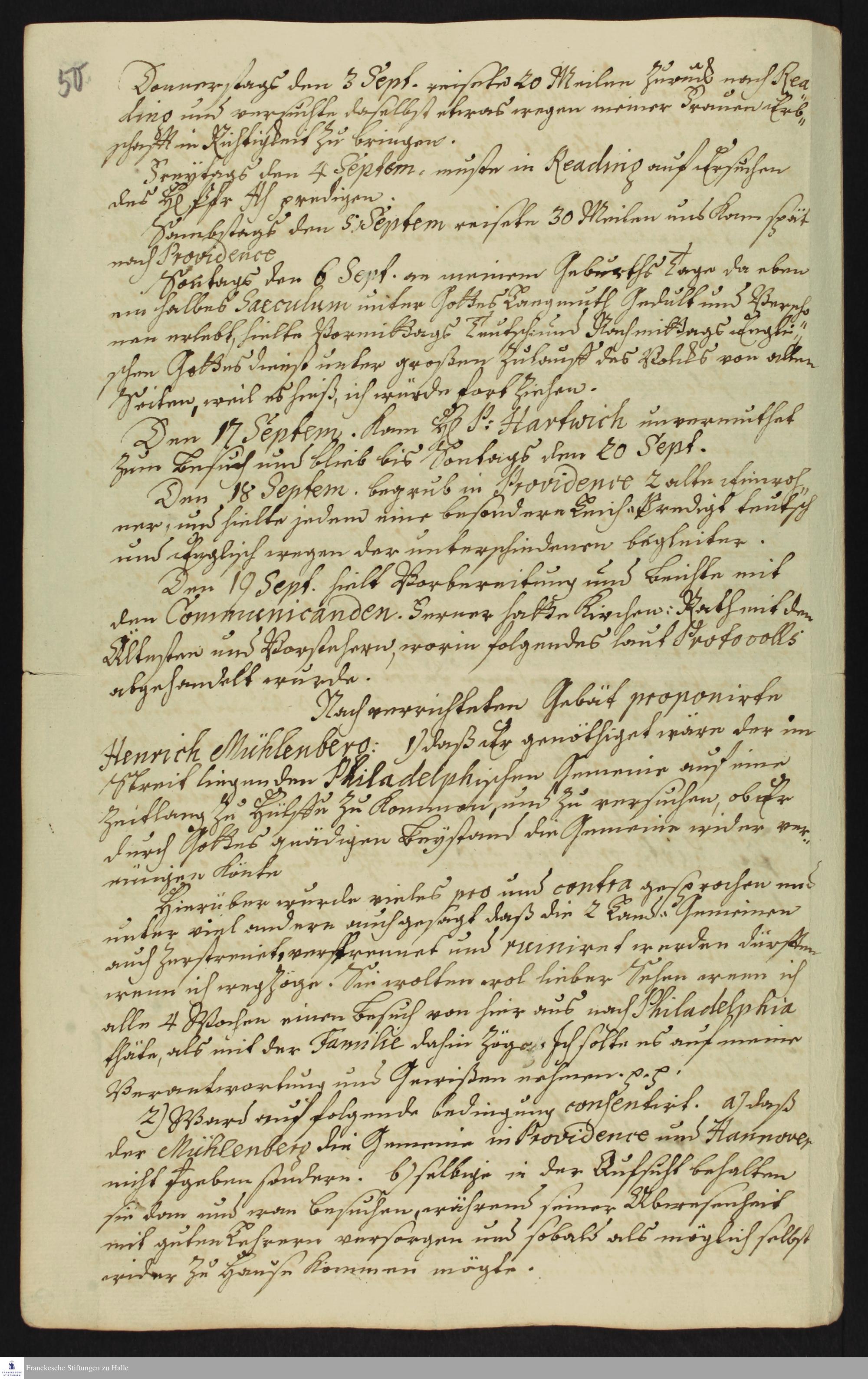 Auszug aus dem Tagebuch von Heinrich Melchior Mühlenberg.