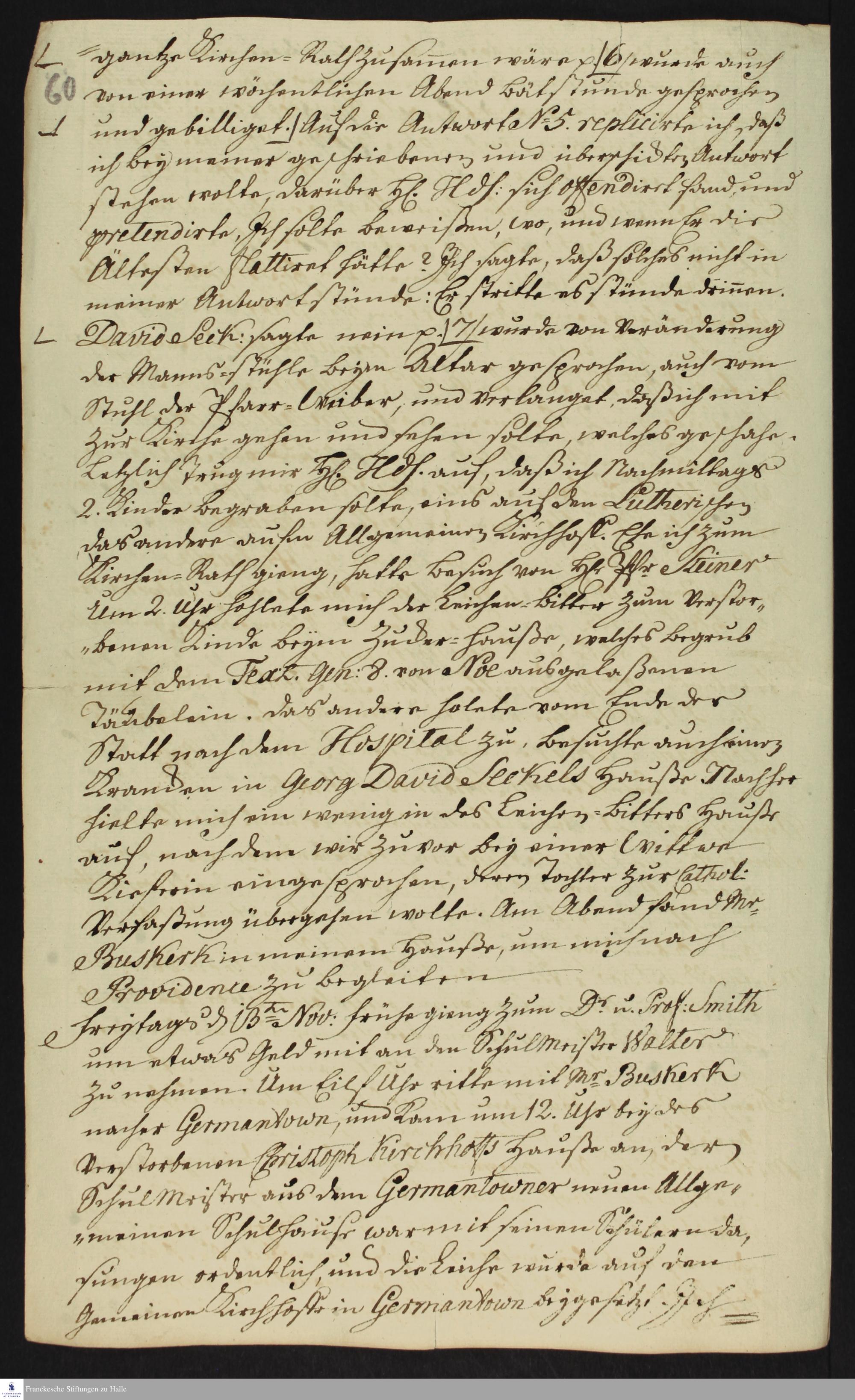 Auszug aus dem Tagebuch von Heinrich Melchior Mühlenberg.