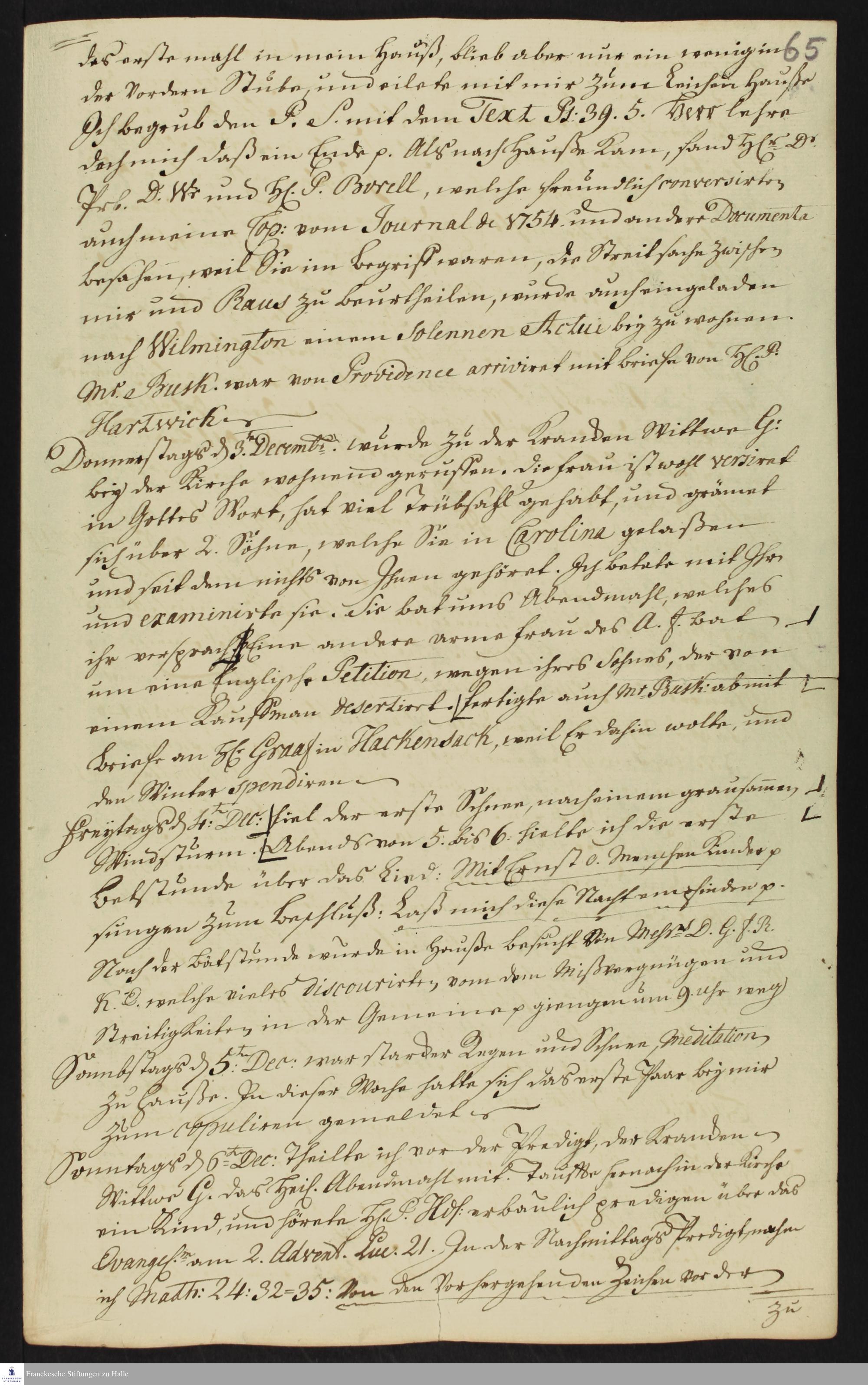Auszug aus dem Tagebuch von Heinrich Melchior Mühlenberg.