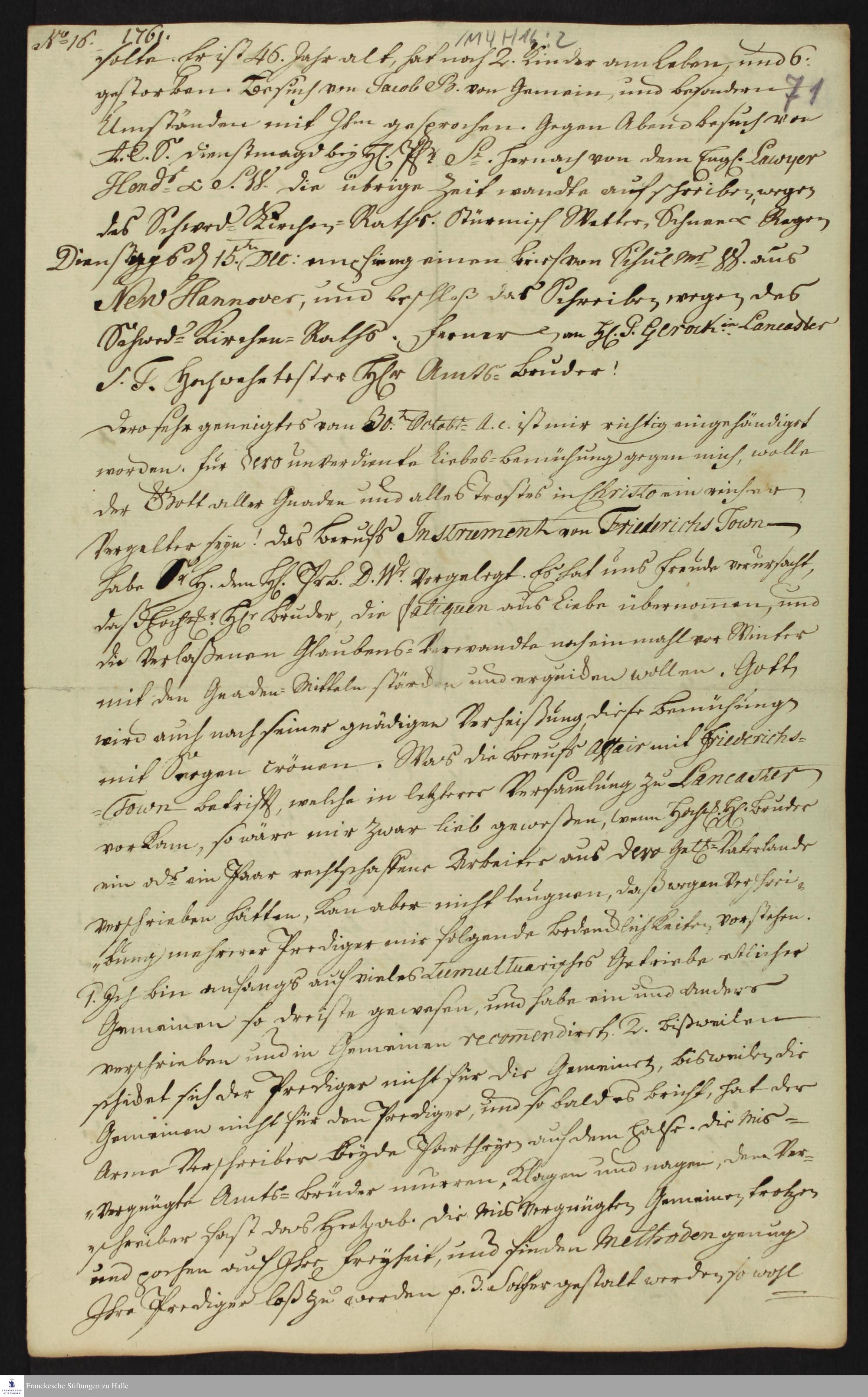 Auszug aus dem Tagebuch von Heinrich Melchior Mühlenberg.