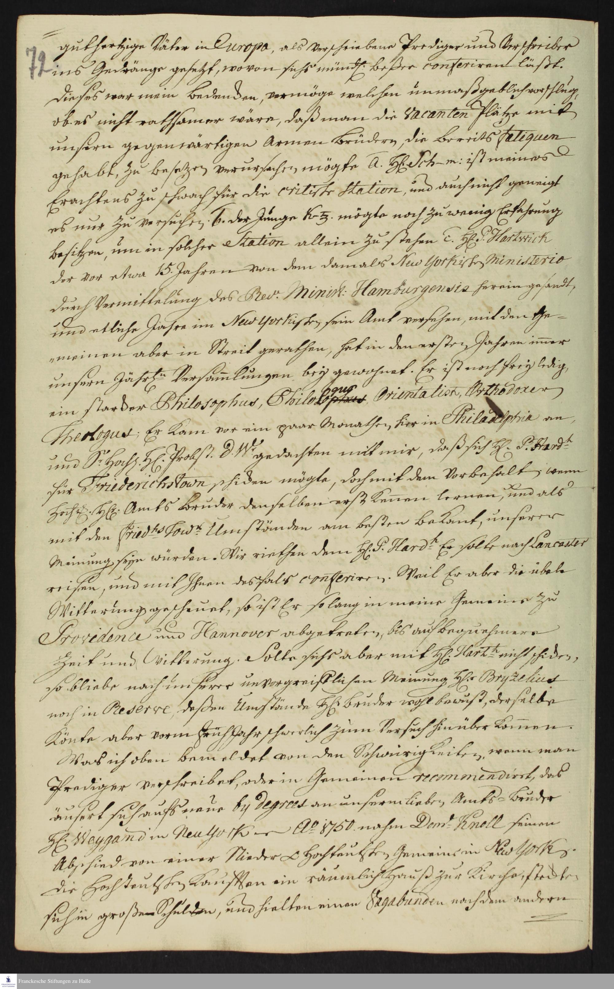Auszug aus dem Tagebuch von Heinrich Melchior Mühlenberg.