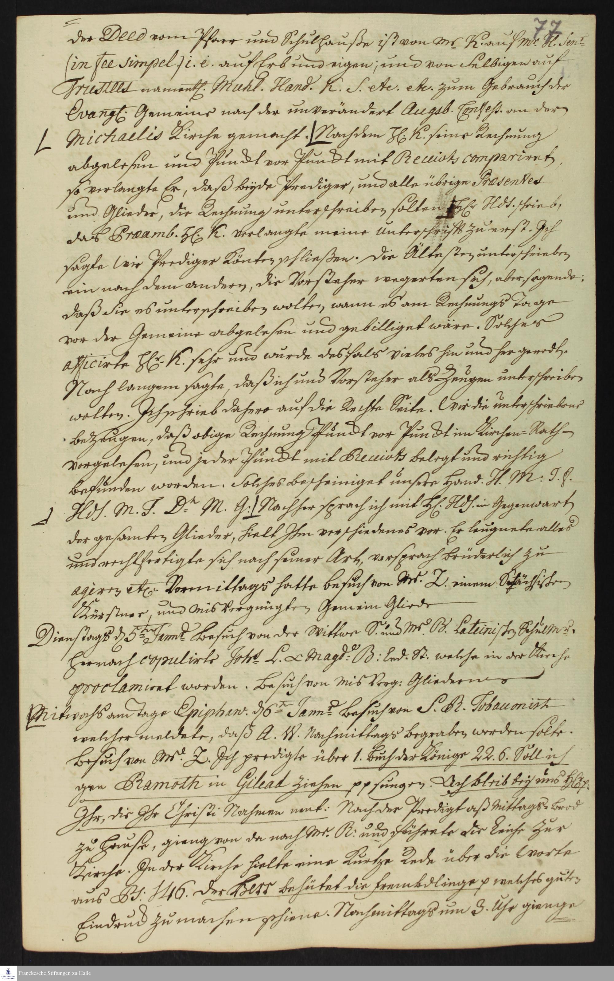 Auszug aus dem Tagebuch von Heinrich Melchior Mühlenberg.
