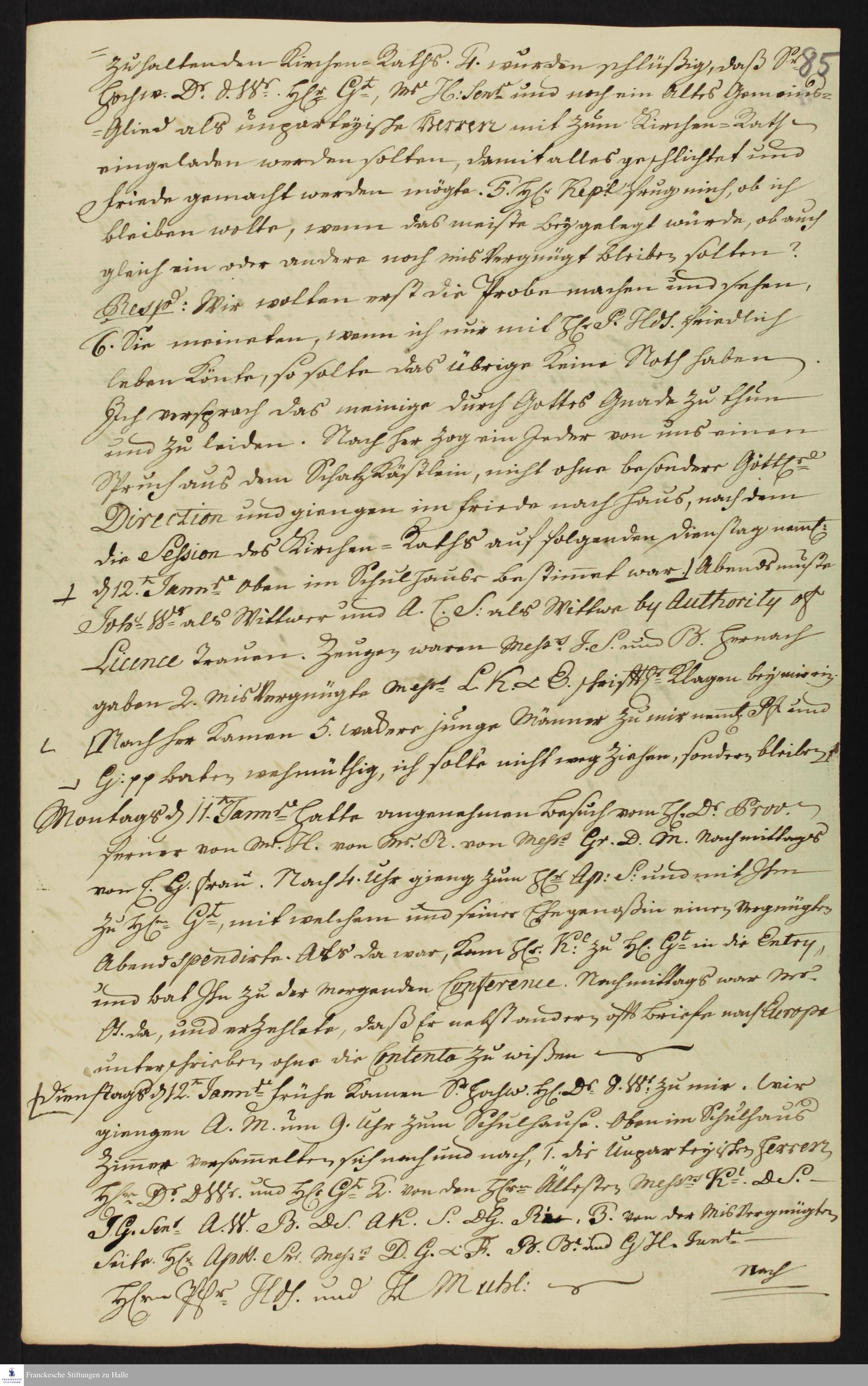 Auszug aus dem Tagebuch von Heinrich Melchior Mühlenberg.
