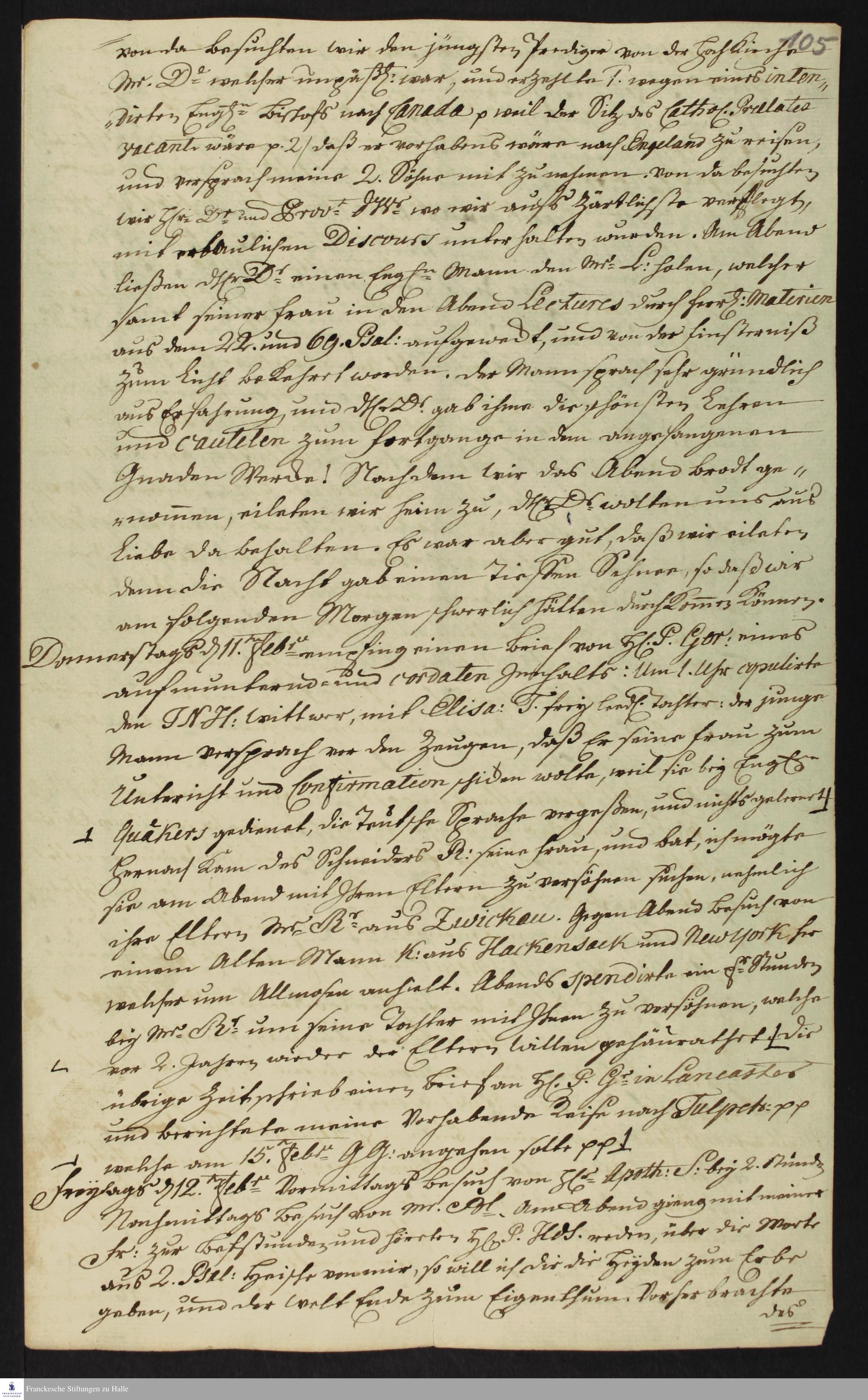 Auszug aus dem Tagebuch von Heinrich Melchior Mühlenberg.