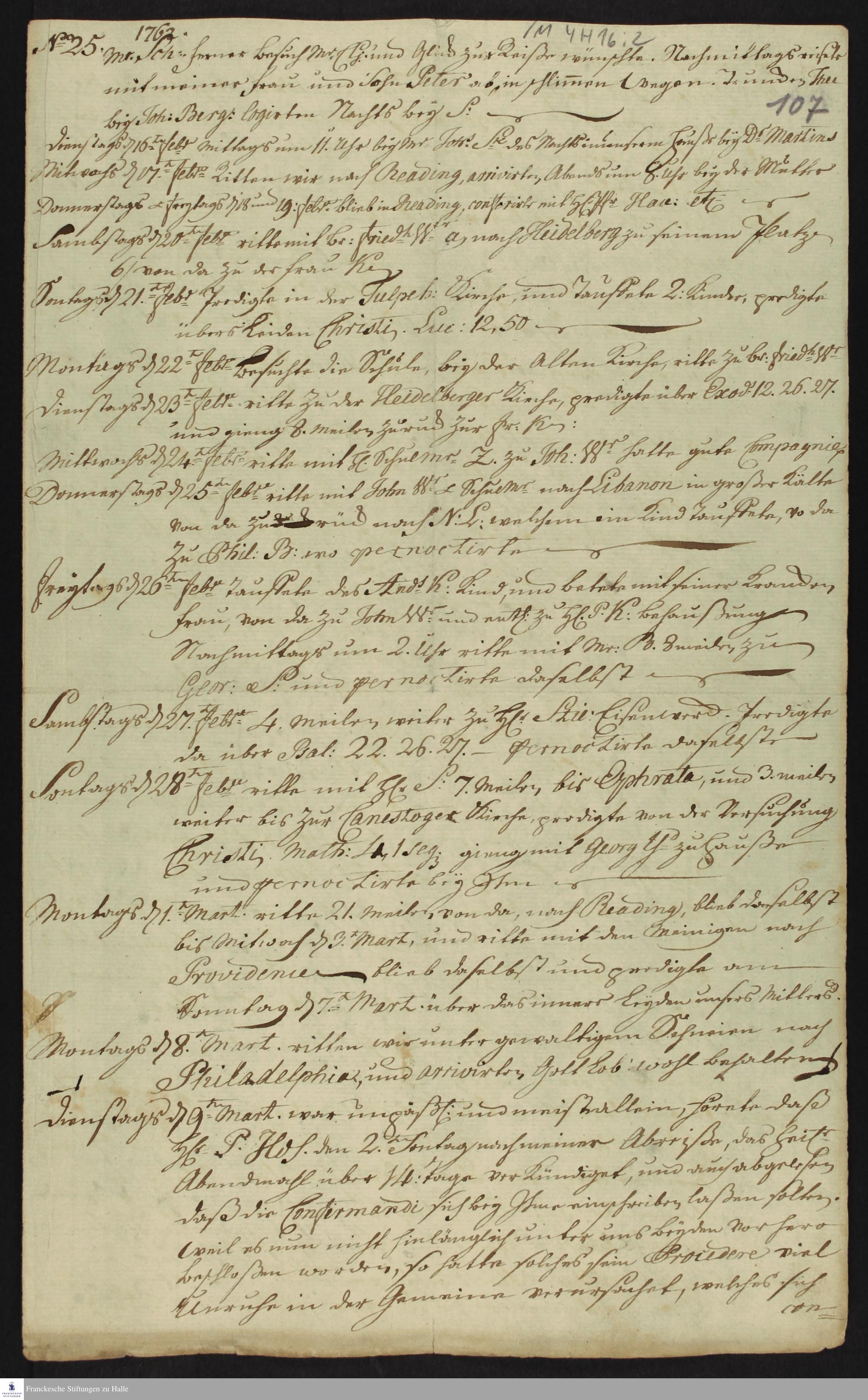 Auszug aus dem Tagebuch von Heinrich Melchior Mühlenberg.