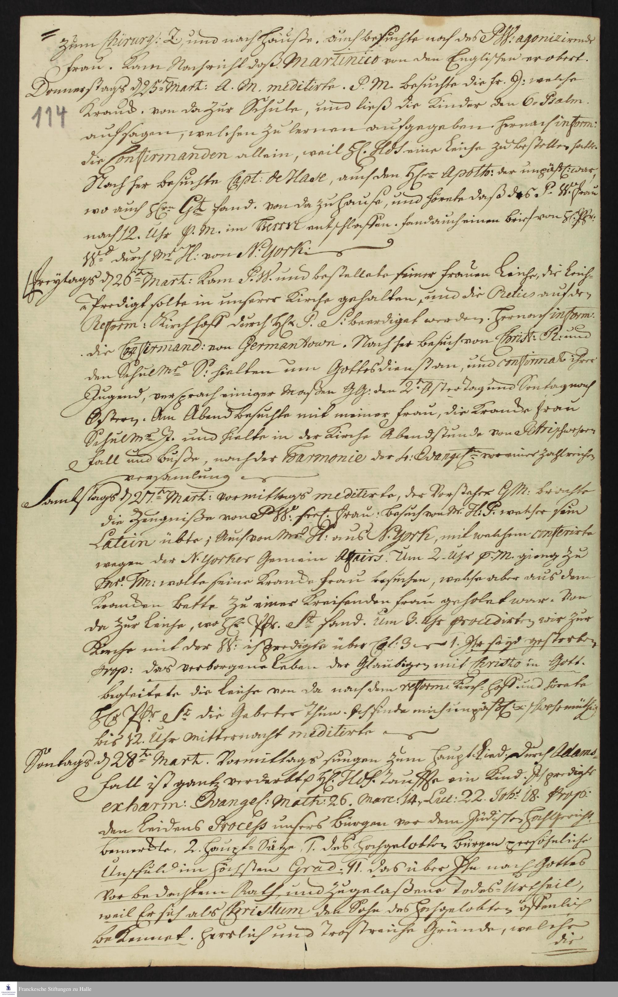 Auszug aus dem Tagebuch von Heinrich Melchior Mühlenberg.