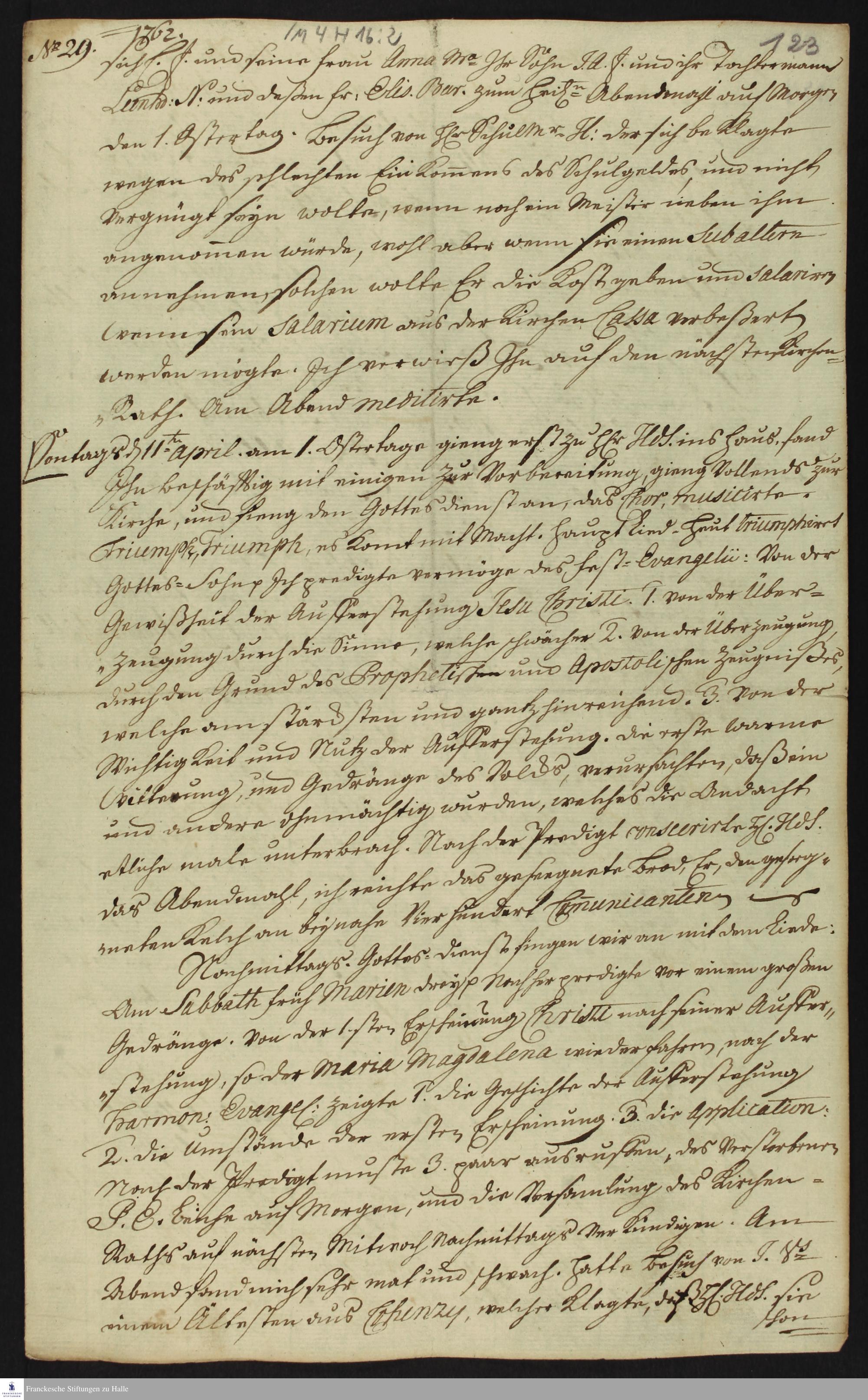 Auszug aus dem Tagebuch von Heinrich Melchior Mühlenberg.