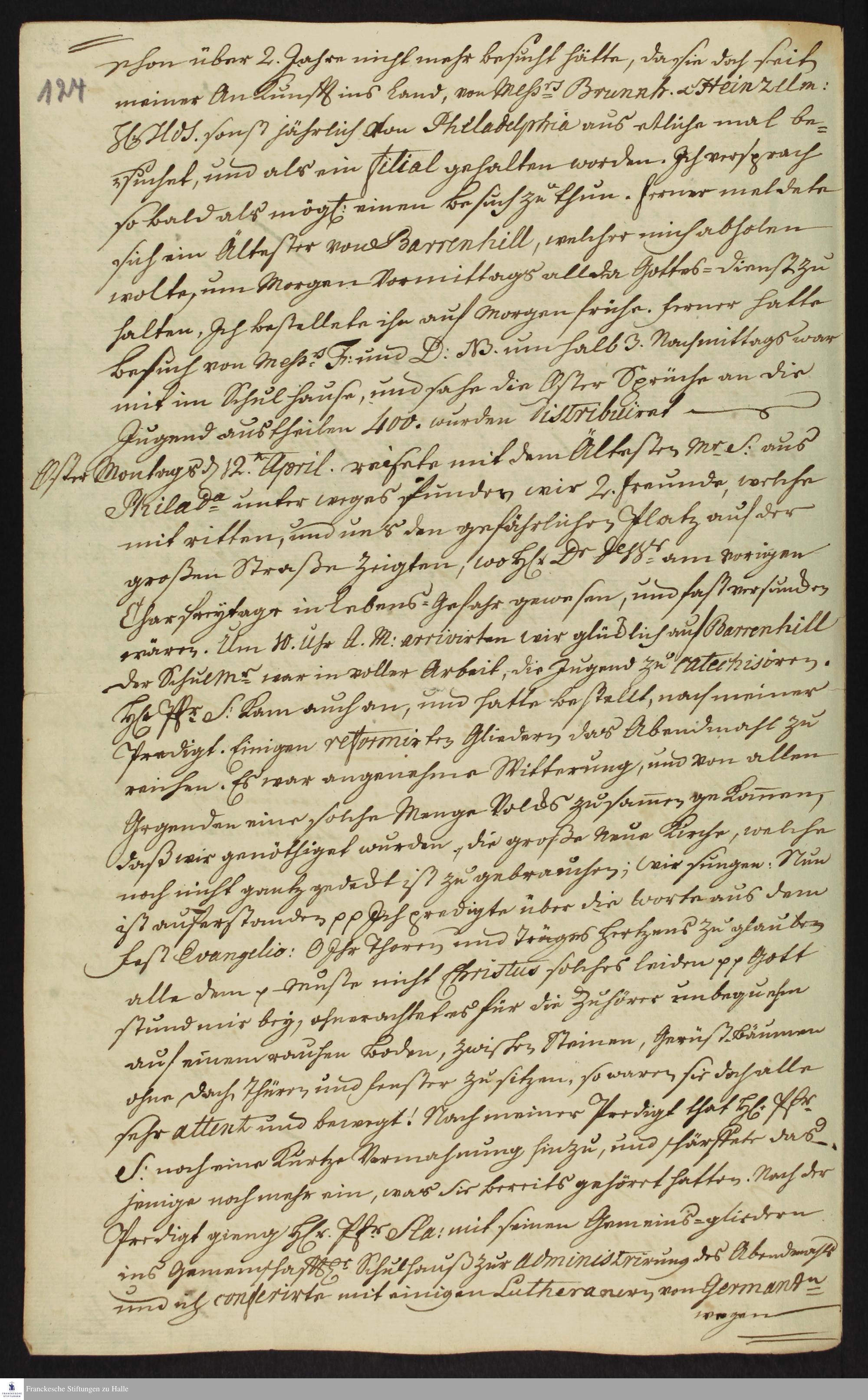 Auszug aus dem Tagebuch von Heinrich Melchior Mühlenberg.