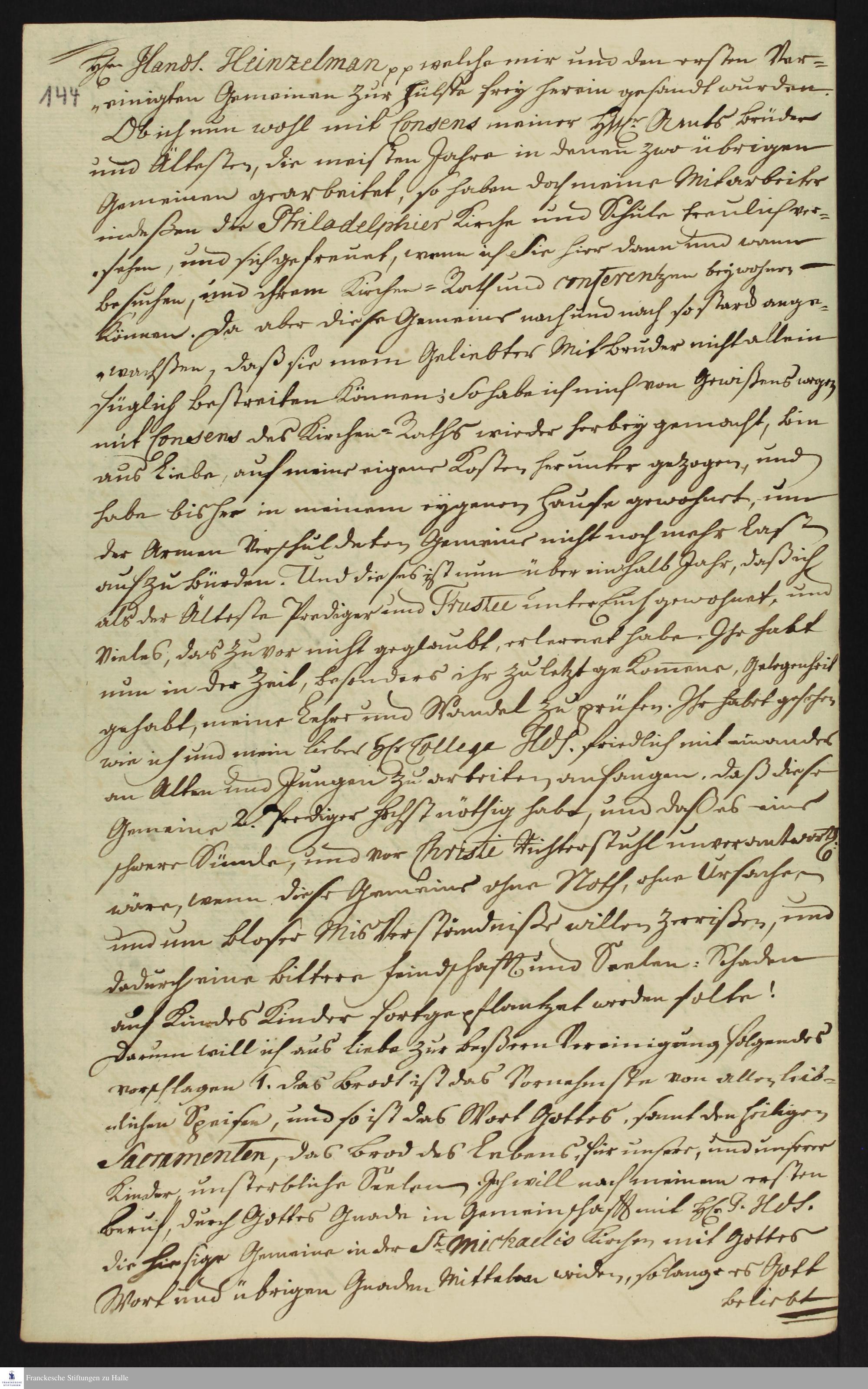 Auszug aus dem Tagebuch von Heinrich Melchior Mühlenberg.