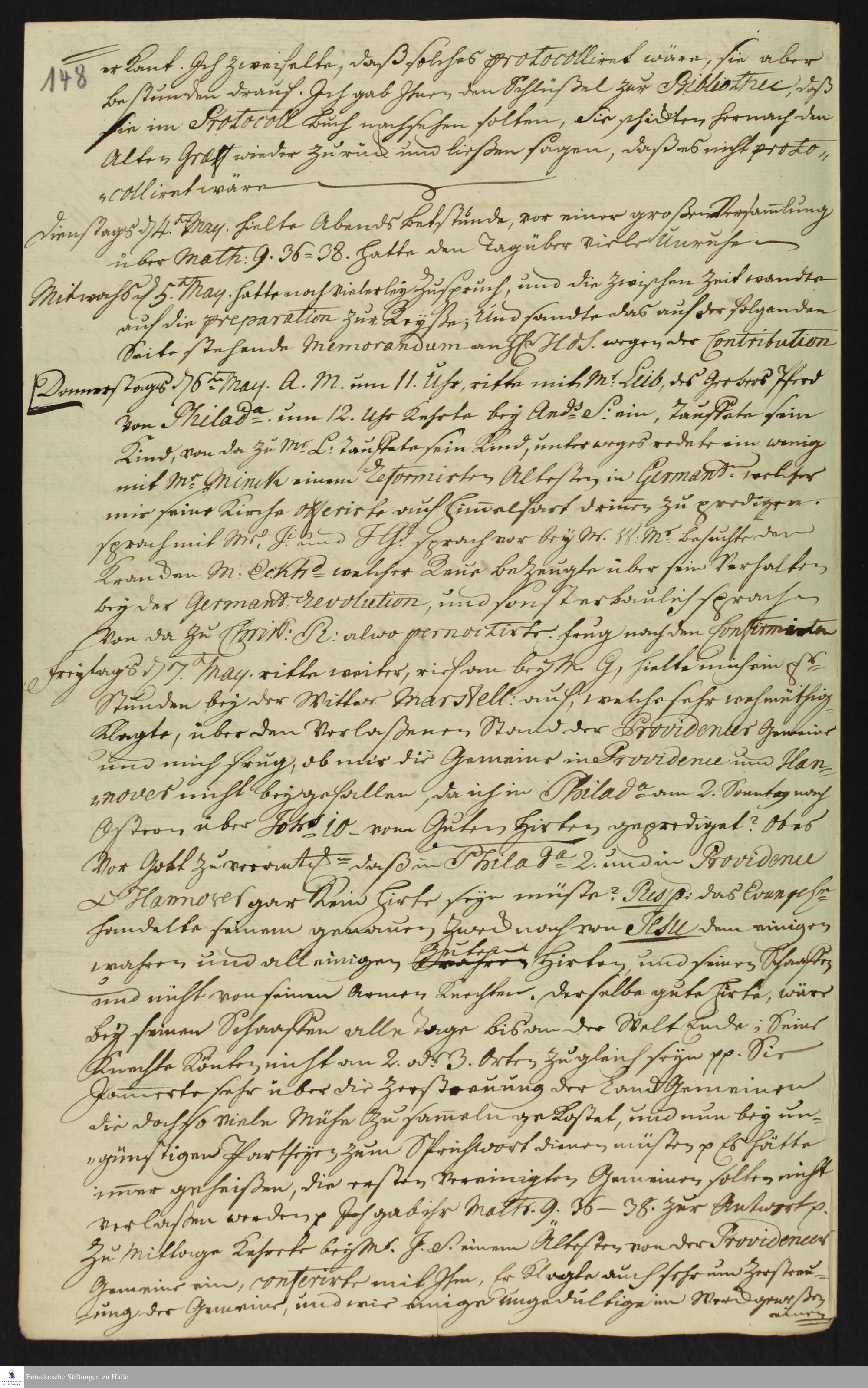 Auszug aus dem Tagebuch von Heinrich Melchior Mühlenberg.