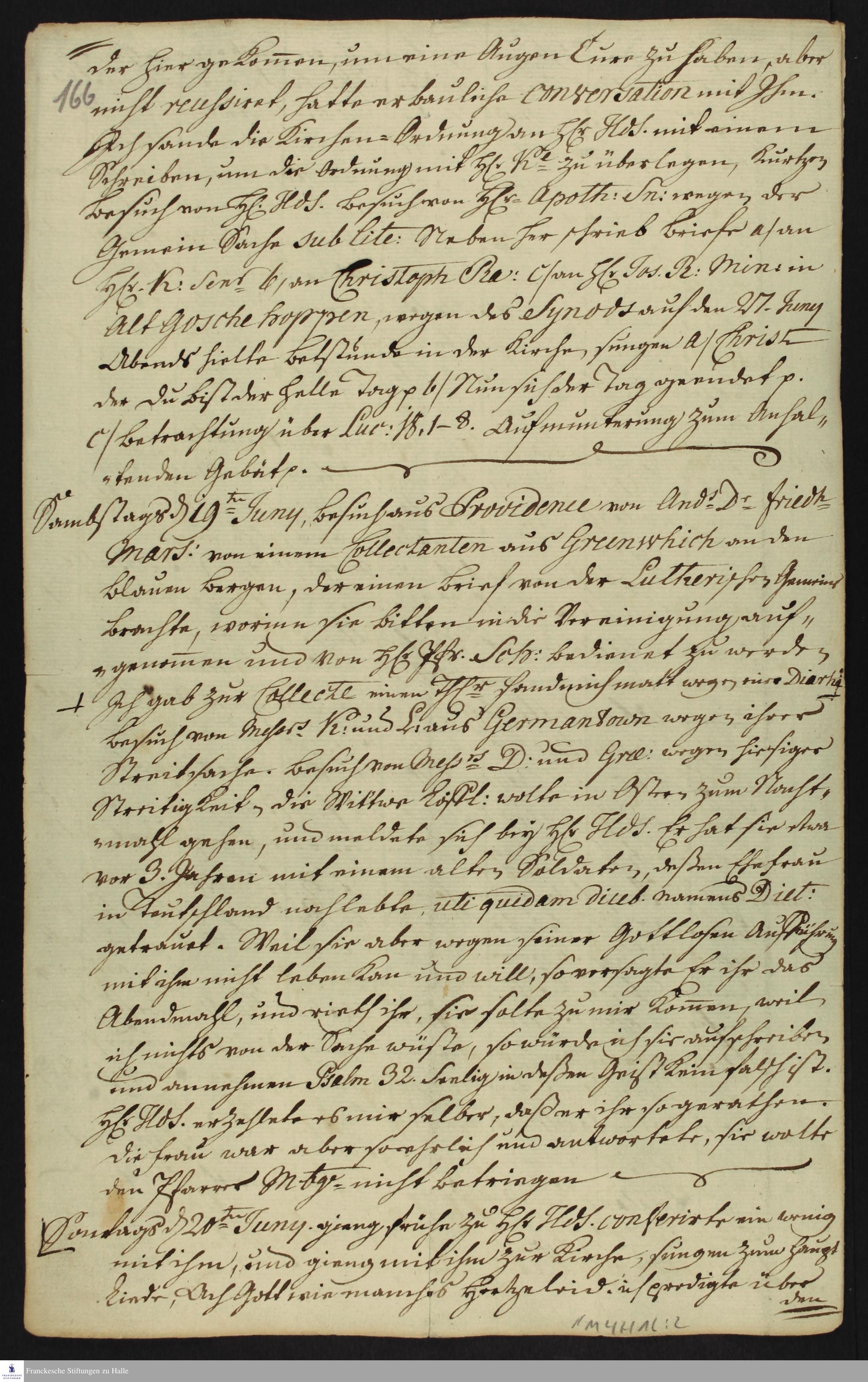 Auszug aus dem Tagebuch von Heinrich Melchior Mühlenberg.