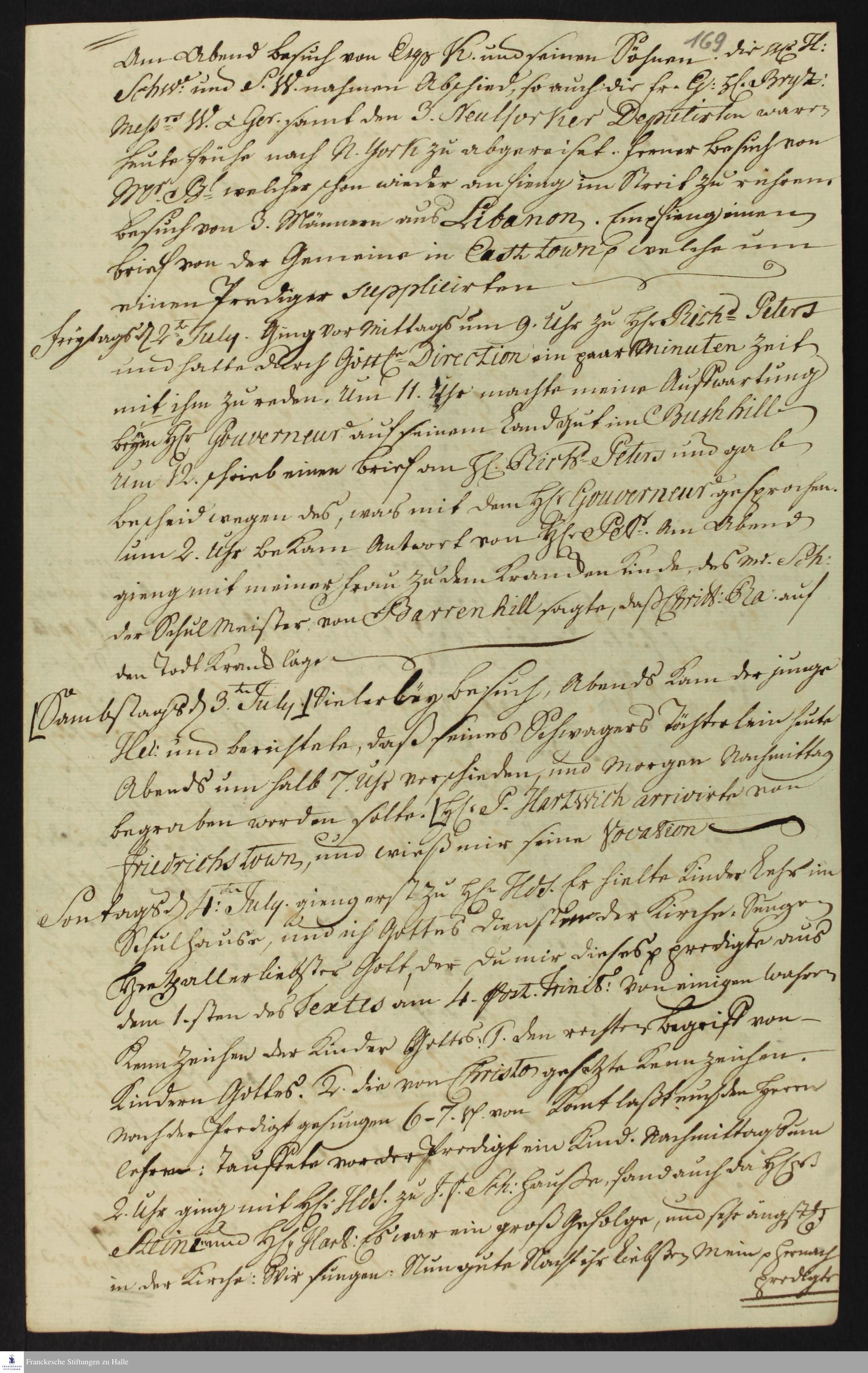 Auszug aus dem Tagebuch von Heinrich Melchior Mühlenberg.