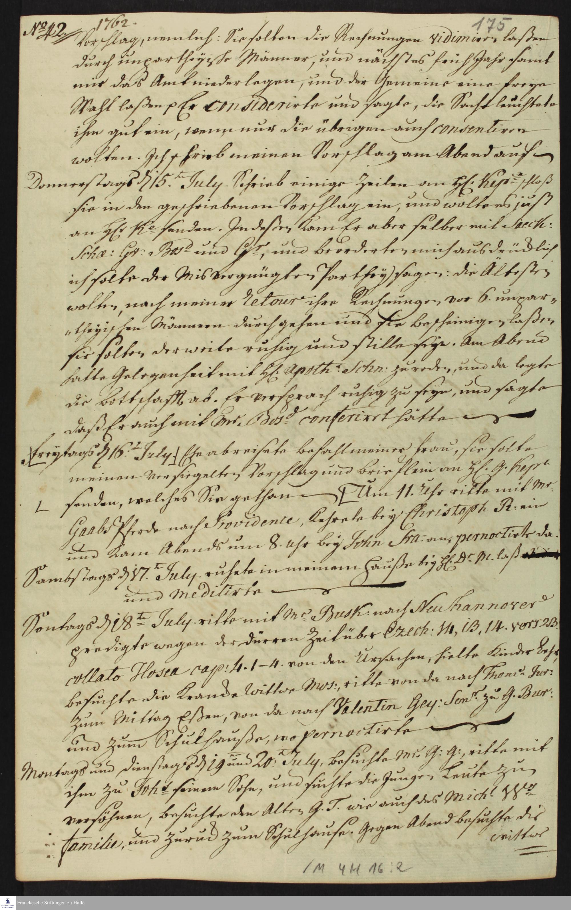 Auszug aus dem Tagebuch von Heinrich Melchior Mühlenberg.